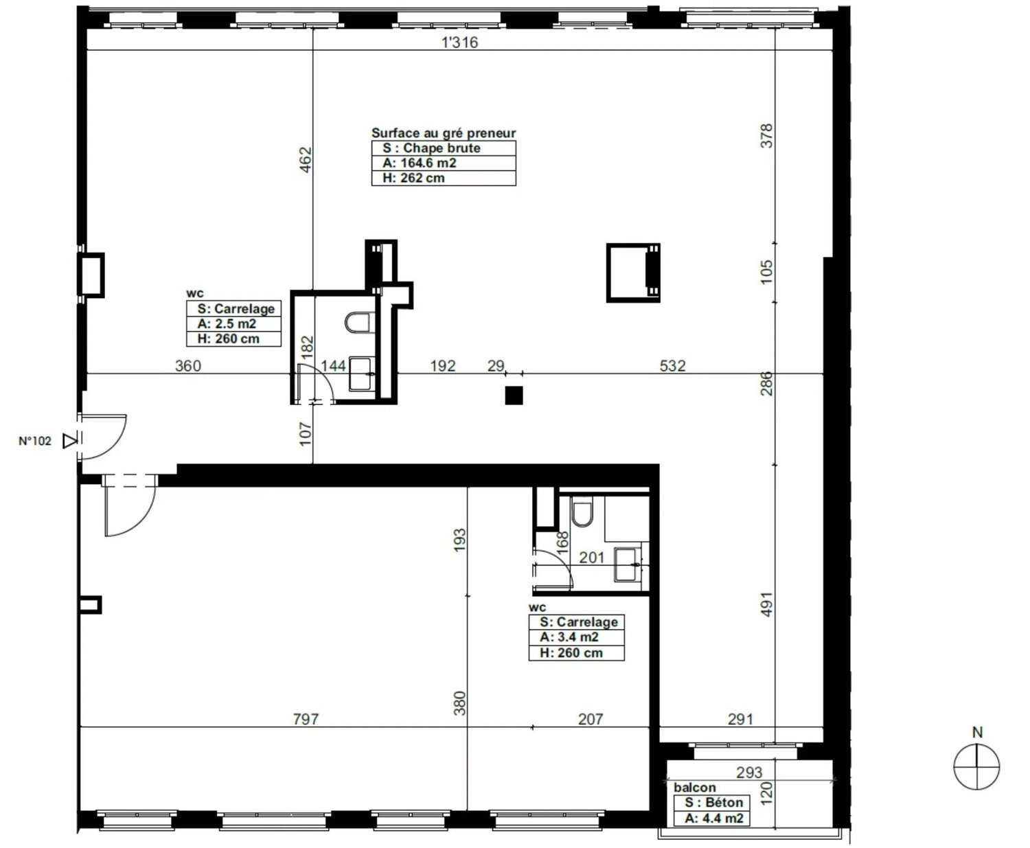 Le bâtiment propose une surface de 180 m² au 1er étage avec balcon, livrée à l'état brut offrant ainsi une entière flexibilité d'aménagement.