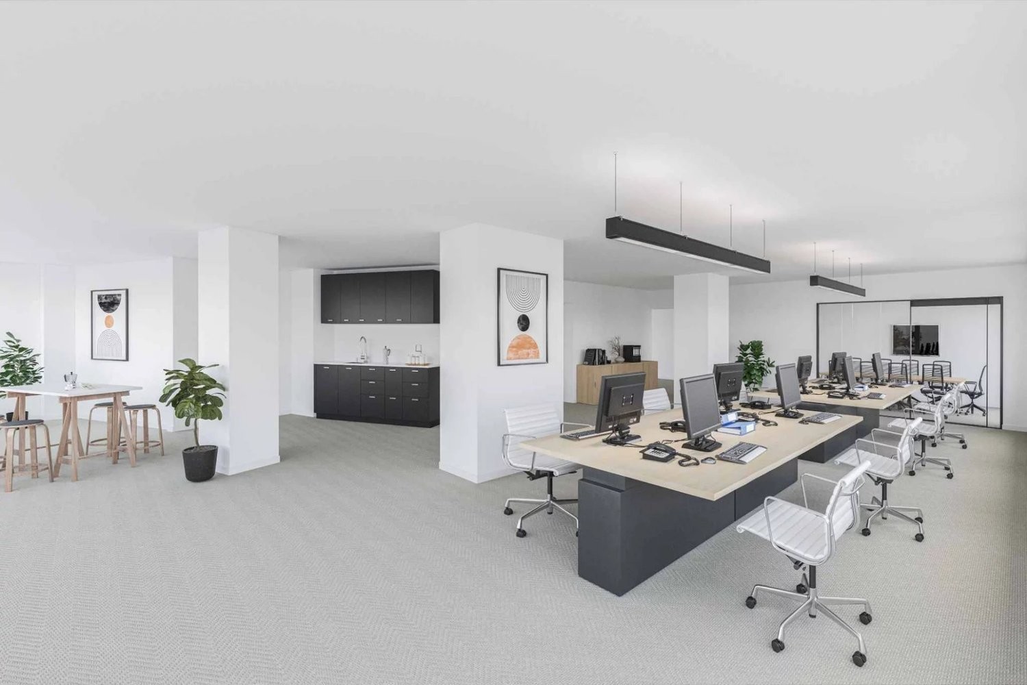 Descriptif des surfaces : - 1 zone de réception - 2 open spaces - 1 balcon - 2 sanitaires