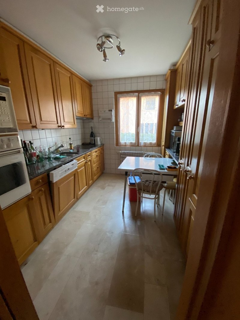 Appartement de 3.5 pièces, au rez-de-chaussée d'un petit immeuble de 3 appartements. Avec grande terrasse abritée et surface engazonnée. Quartier tranquille et proche des commodités.