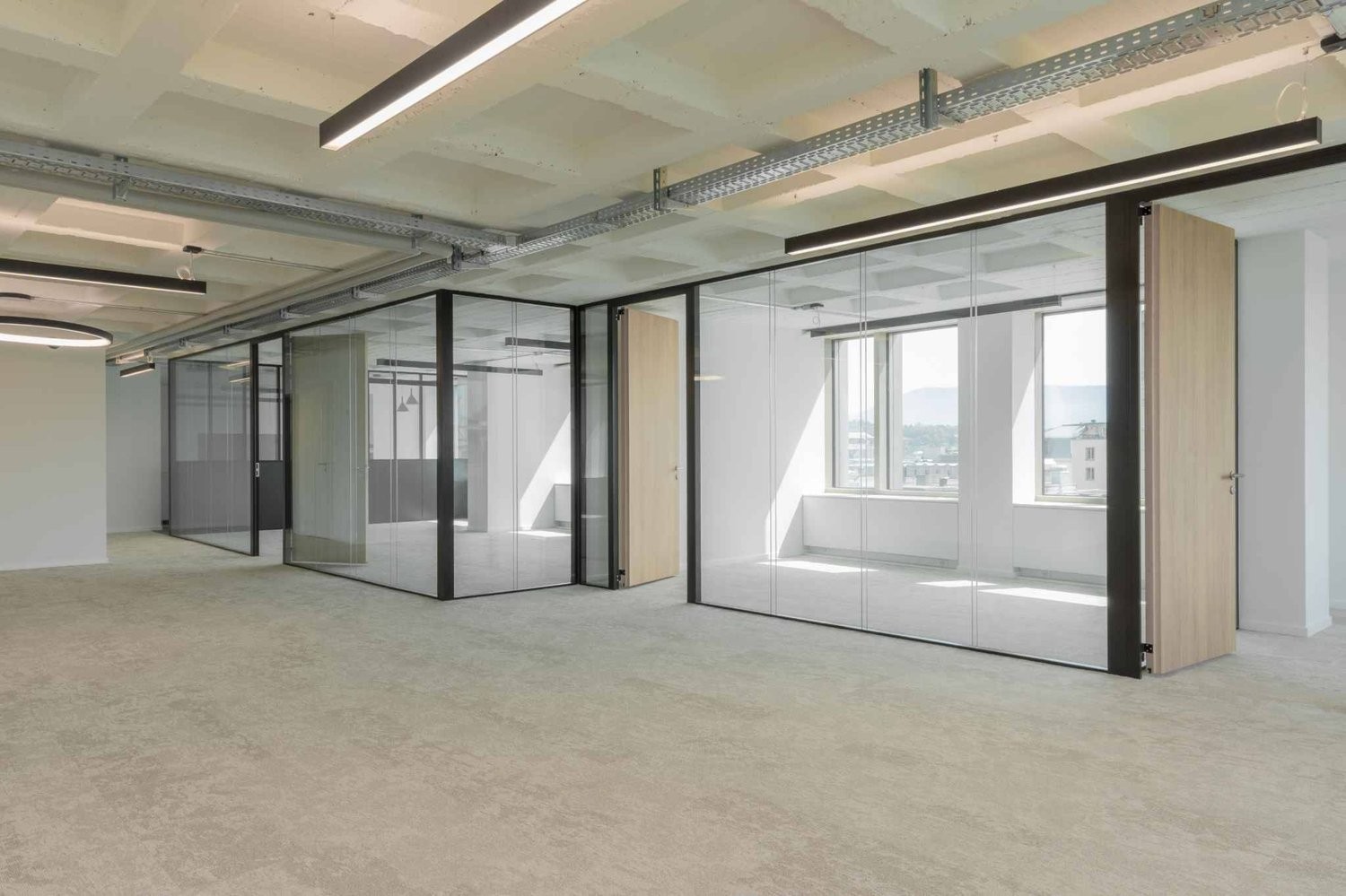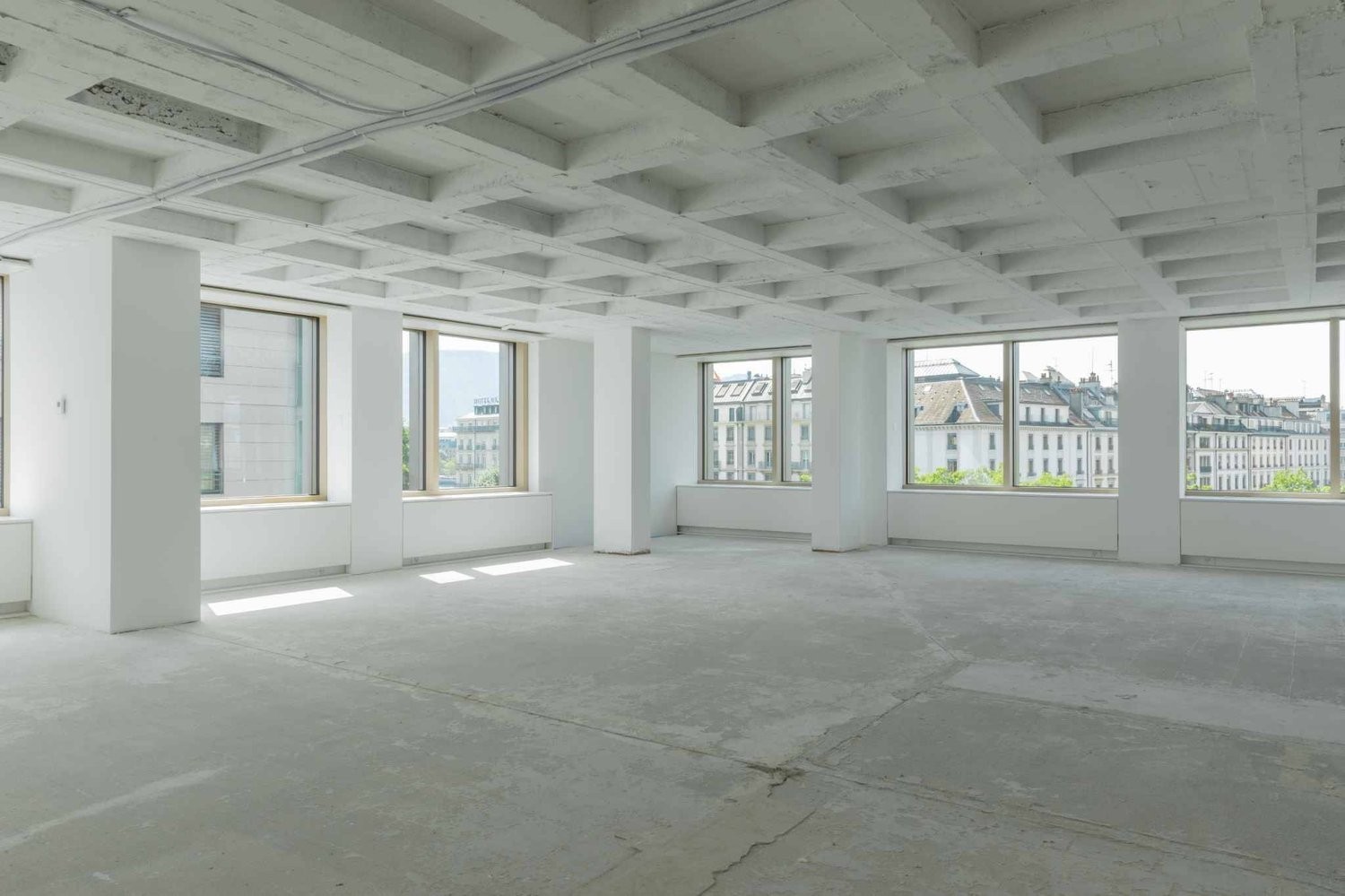 Pour une surface brute, le loyer est de CHF 490.-/m²/an HT HC, avec un bail dès 5 ans et des aménagements à la charge du locataire. L'air rafraîchi et les blocs sanitaires sont déjà en place.