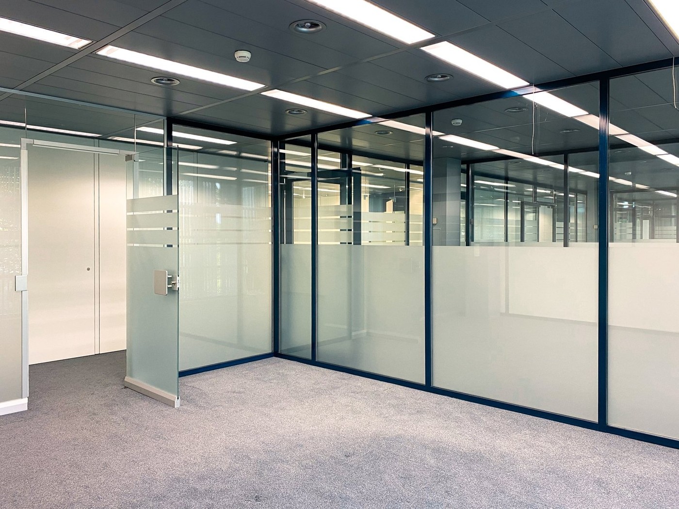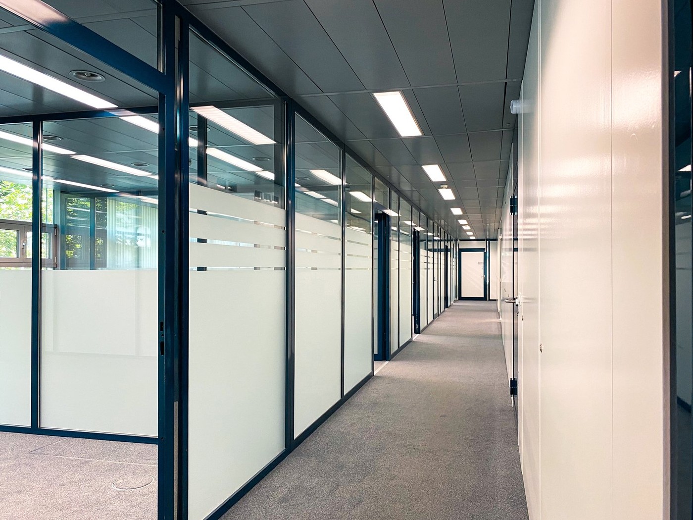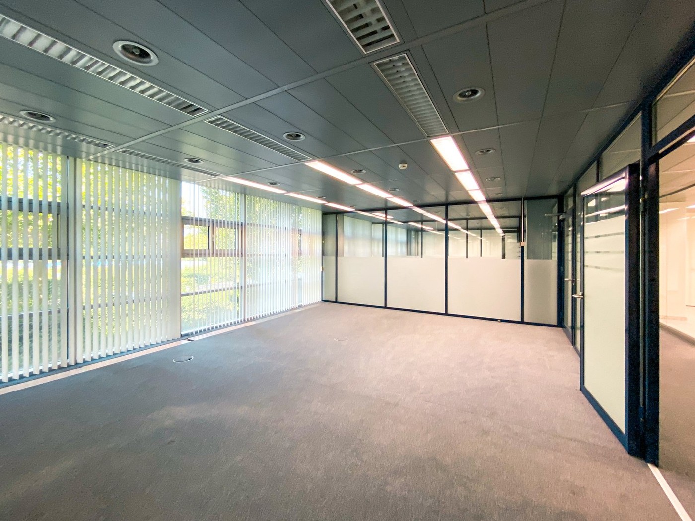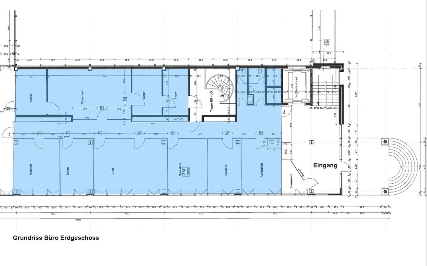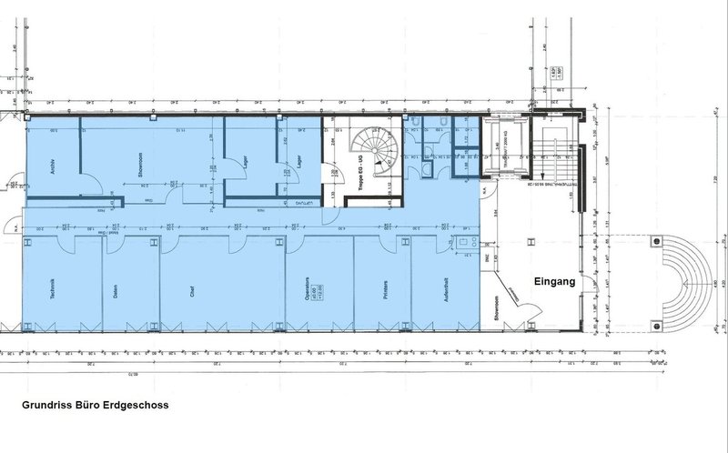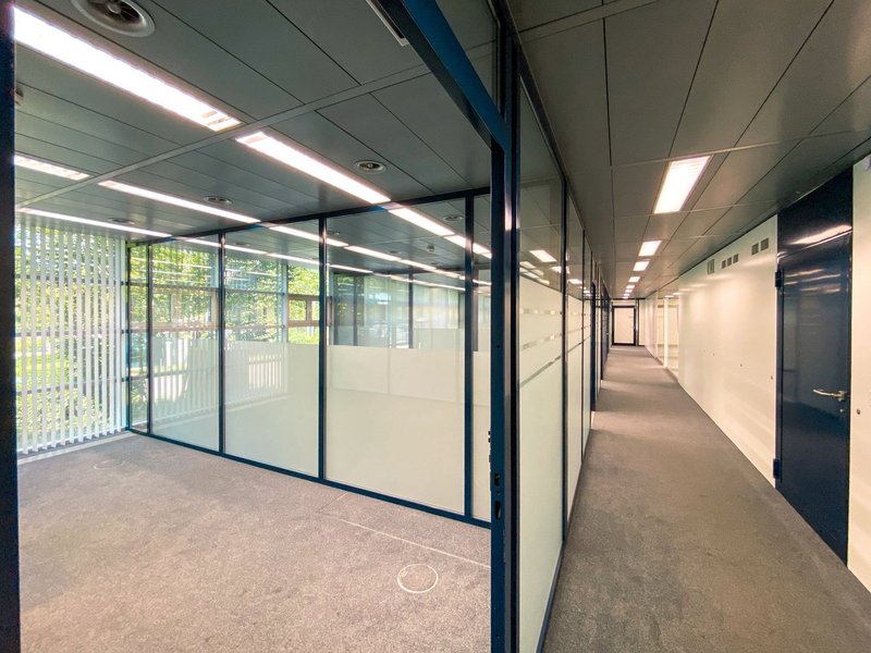 Die im Erdgeschoss gelegene Mietfläche besteht aus 6 einzelnen, durch Glaswände getrennte Büros zwischen 17 und 38 m2 Fläche. Ein knapp 50 m2 grosser Show- oder Meetingraum, eine integrierte Teeküche plus diverse Lager- und Archivräume runden die Büroeinheit ab.