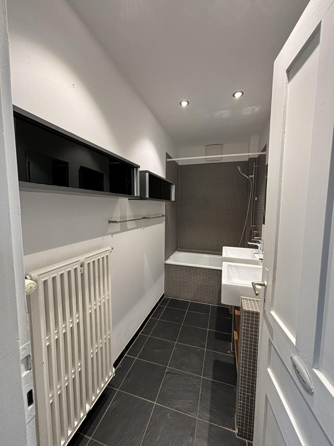 - Badezimmer mit Badewanne, keramische Bodenplatten