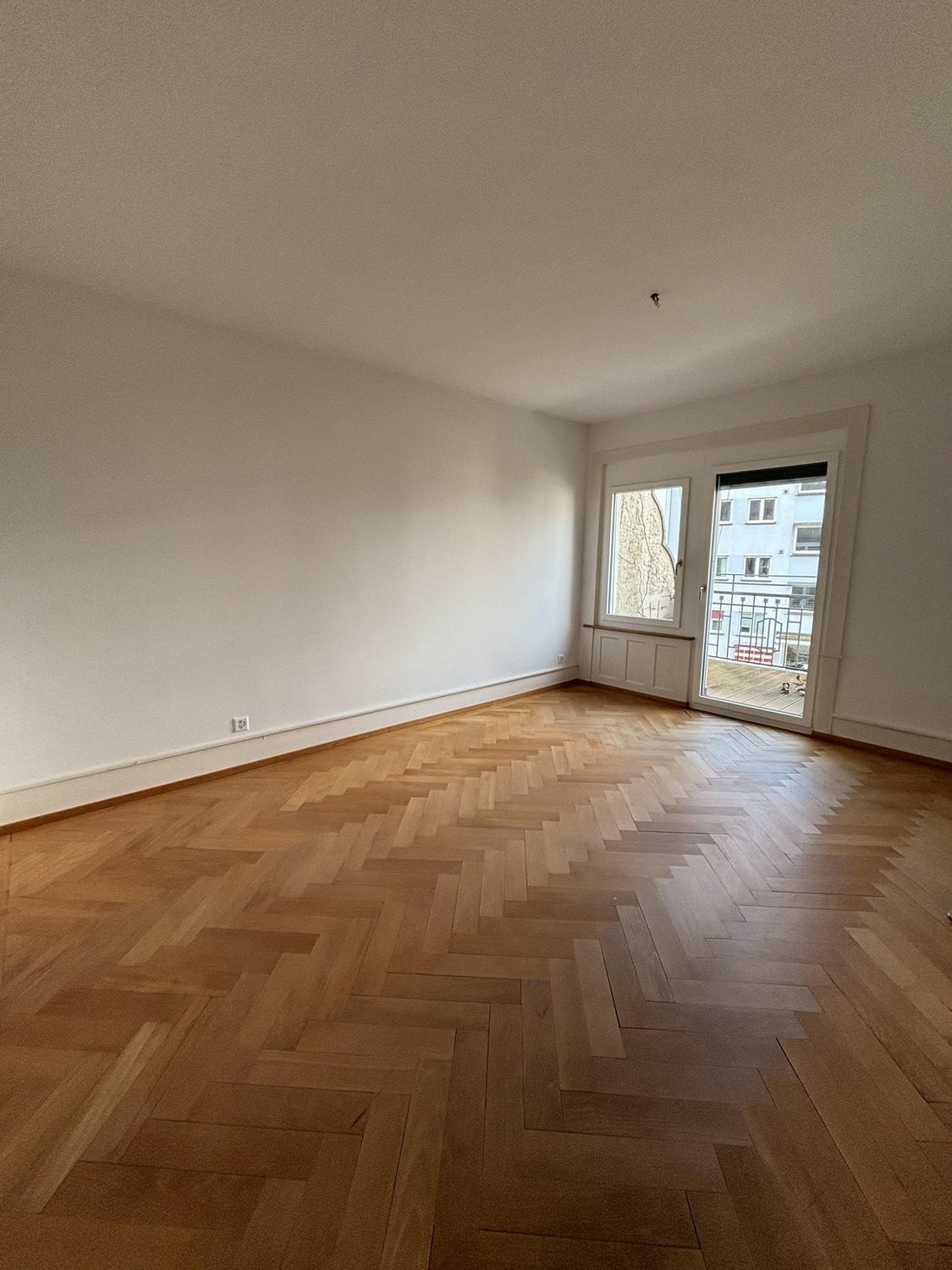 - helles Schlafzimmer mit Fischgrätenparkett
