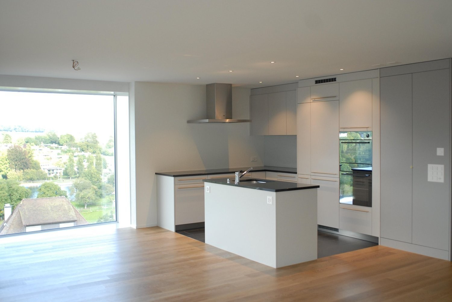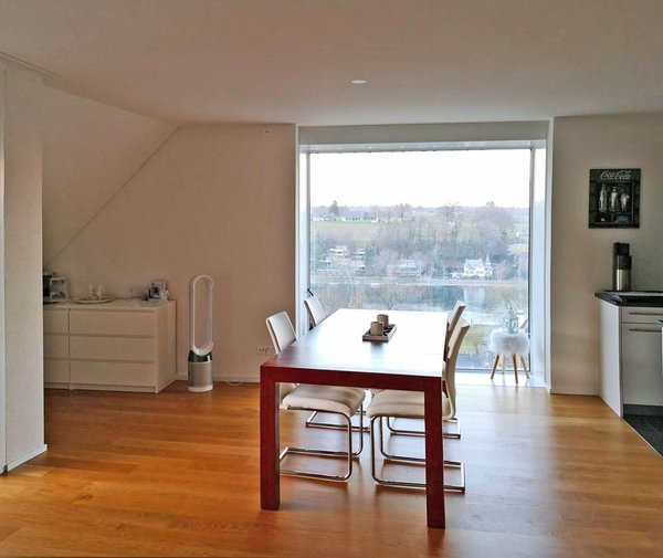 Die Wohnung befindet sich in einem gepflegten Wohnkomplex und hat eine hochwertige Ausstattung. Die Raumaufteilung ist grosszügig. Der offene Wohn- und Essbereich bietet viel Platz zum Verweilen ein. Für eine helle und freundliche Atmosphäre sorgen die bodentiefen Fenster und es ermöglicht Ihnen einen ungestörten Blick auf den malerischen Rhein.