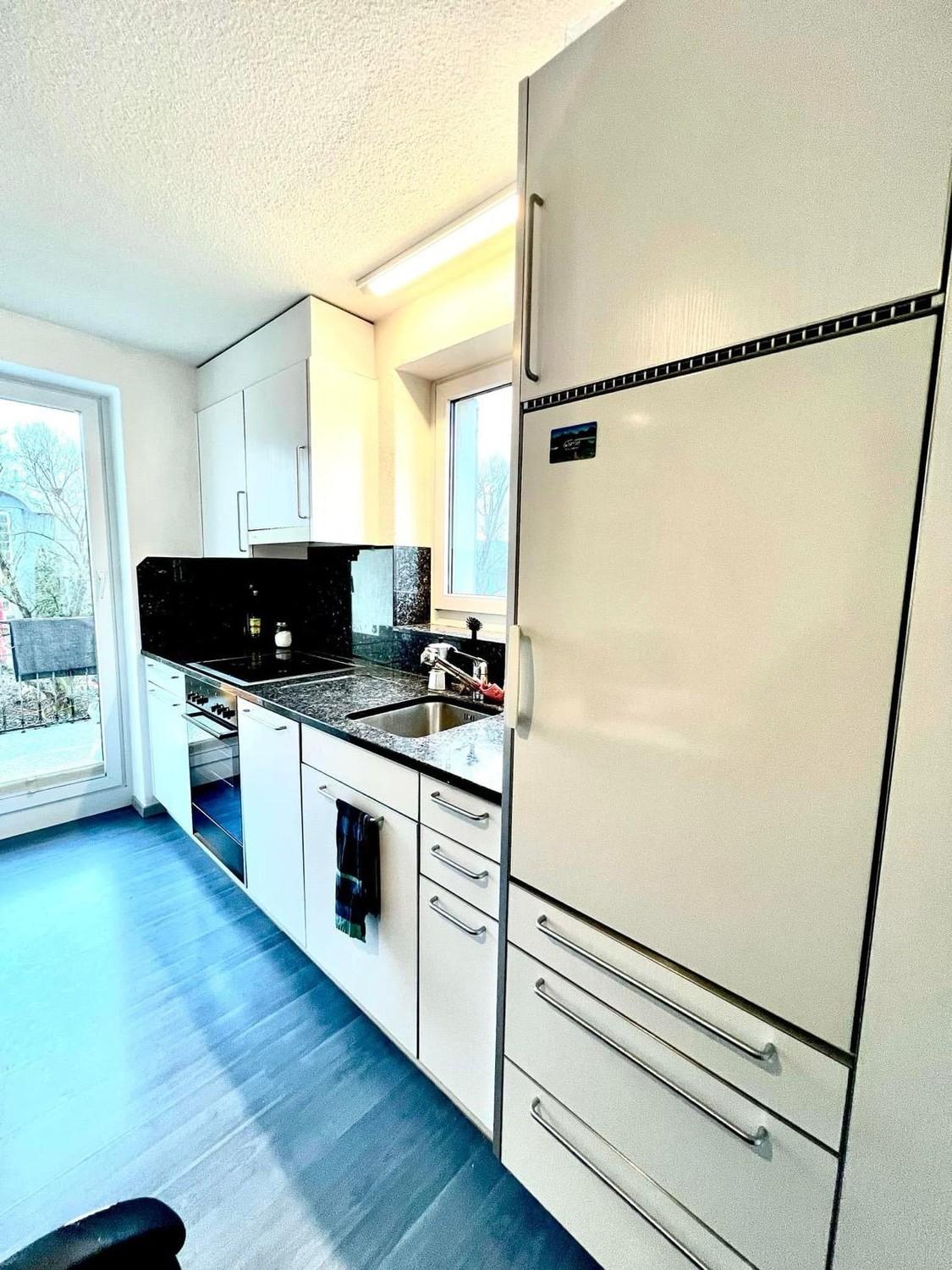 Die Wohnung liegt in einem Familienhaus mit nur drei Parteien – das sorgt für Ruhe und eine angenehme Nachbarschaft. Es gibt viel Grün rundherum, einen gemeinsam genutzten Garten mit Grill, Veloparkplätze sowie nur einen Nachbarn oben und einen unten.
