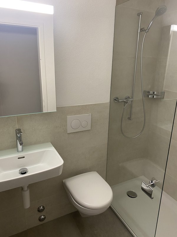 Badezimmer mit Dusche und modernen Armaturen und Installationen