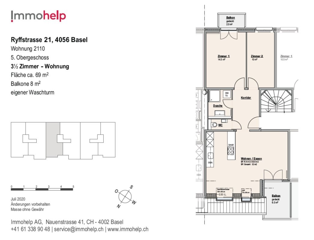 - Balkon hof- und strassenseitig
