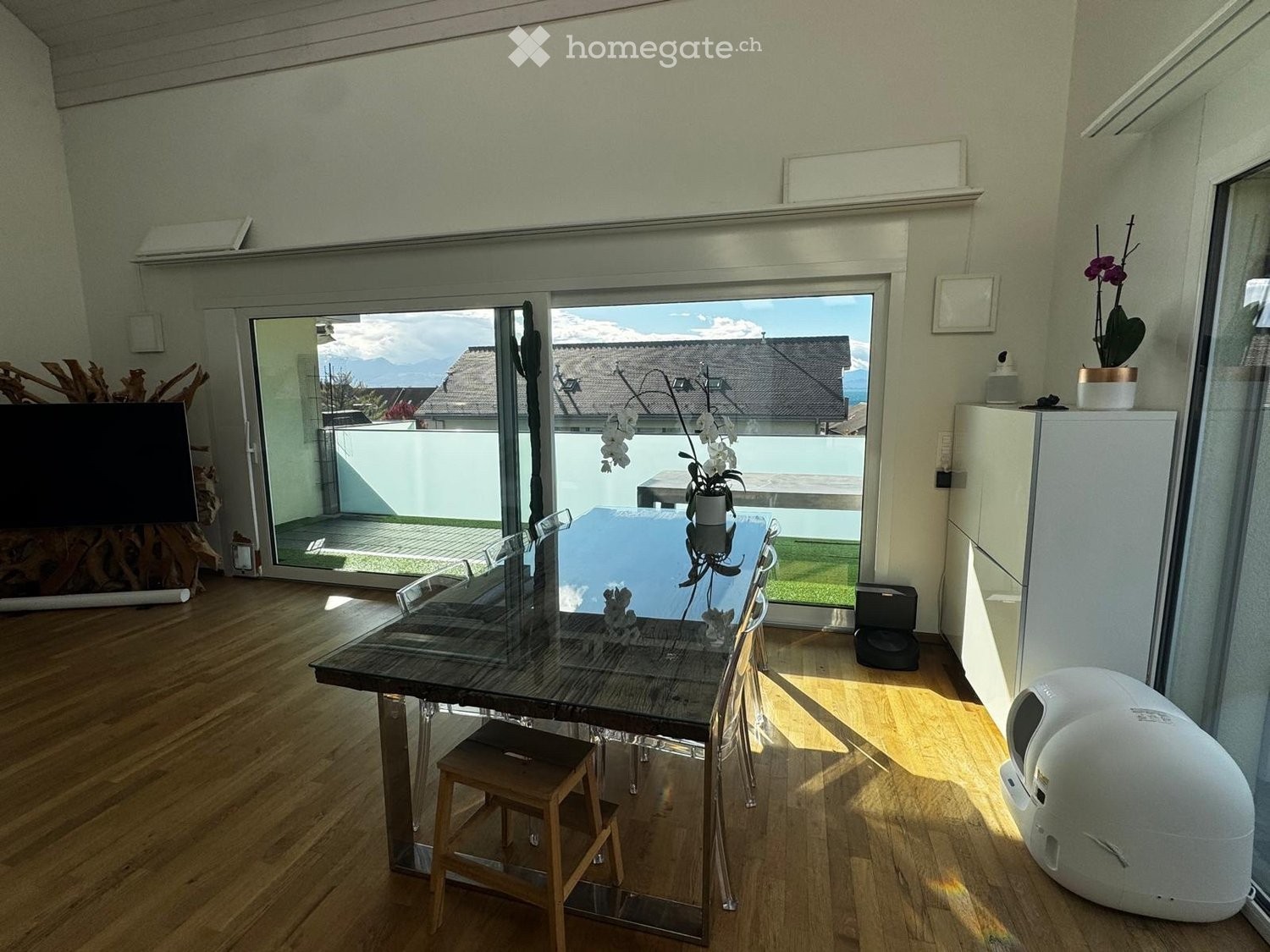 L?appartement, orienté sud-ouest est très lumineux avec des échappées sur le lac.