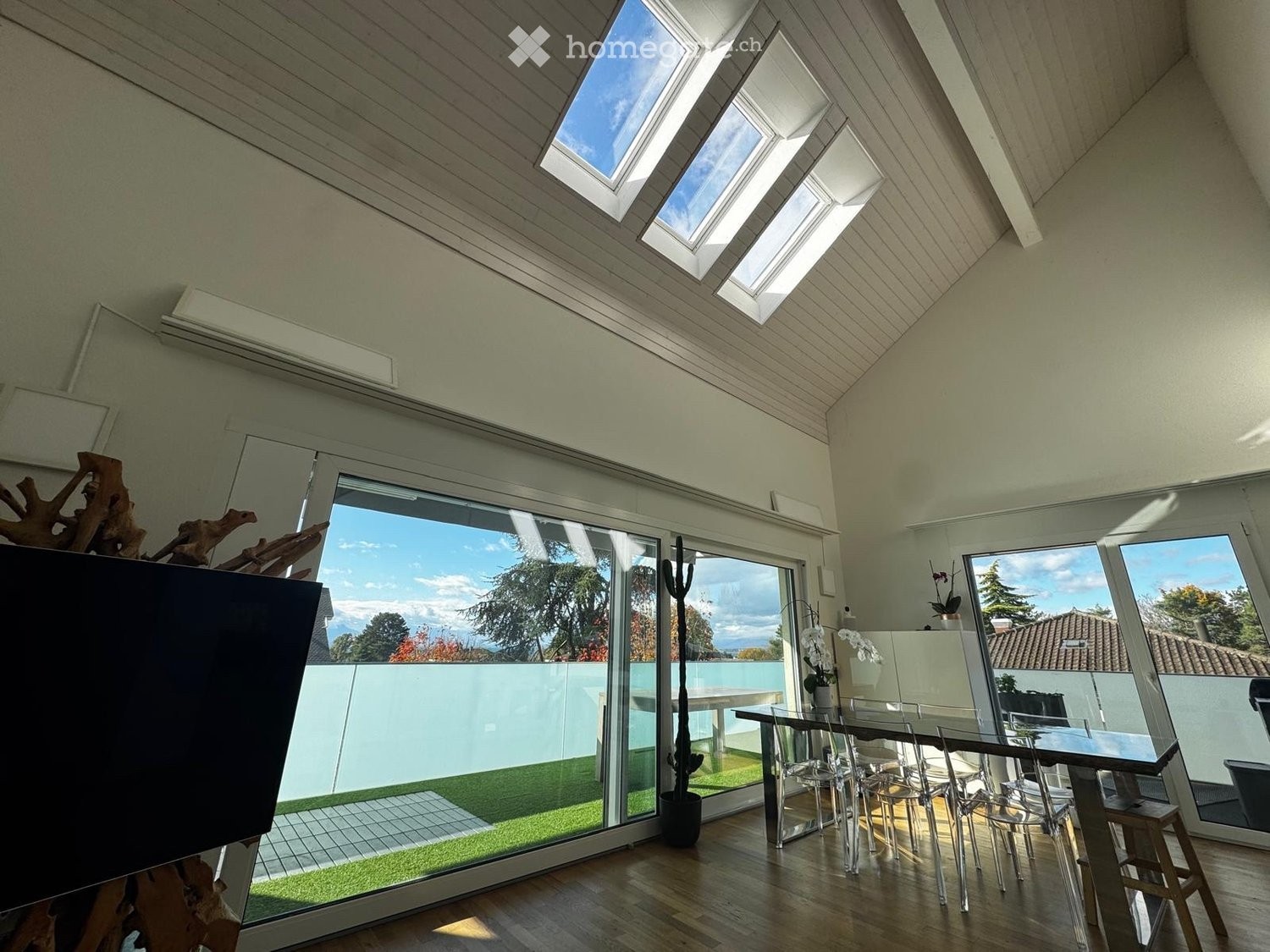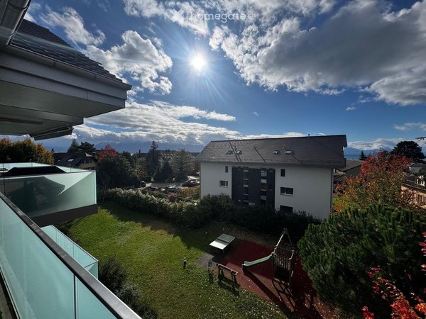 Disponible à partir de mi-novembre : duplex de 5.5 pièces au dernier étage avec un grand balcon en L, une cave et un garage au sein d?une résidence récente pour 3 882.- (loyer : 3 572.-, charges 180.-, boxe fermé 130.-).