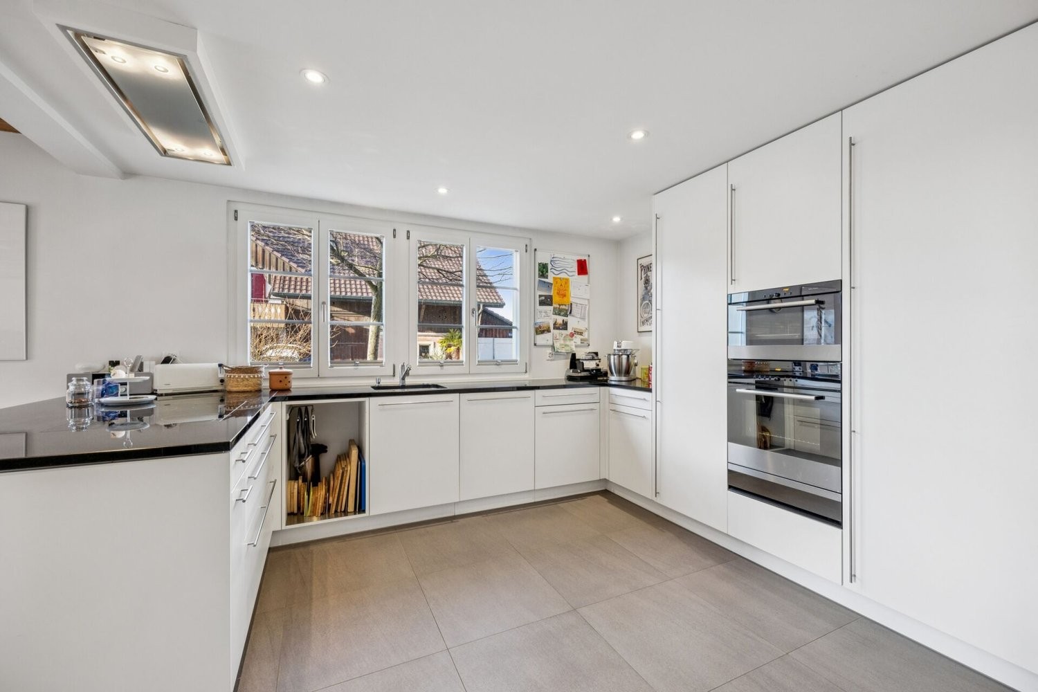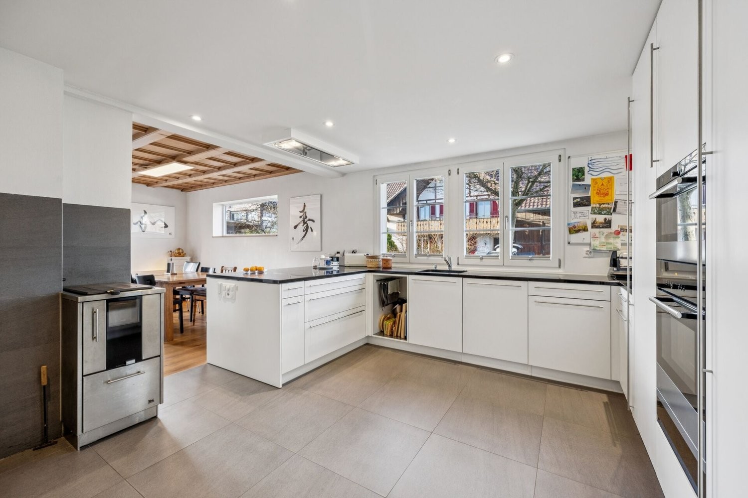Dieses gepflegte 6.5-Zimmer-Einfamilienhaus aus dem Jahr 1925 liegt an ruhiger Lage in Kappelen und vereint traditionellen Charme mit modernem Wohnkomfort. Ein späterer Anbau erweitert das grosszügige Raumangebot und steigert die Wohnqualität deutlich. Das über 1'200 m² grosse Grundstück bietet viel Privatsphäre sowie einen liebevoll gestalteten Aussenbereich mit Garten, Terrasse, Pool und Gewächshaus. Die vielseitig nutzbaren Innenräume, ergänzt durch praktische Nebenflächen, machen das Haus ideal für Familien oder Wohnen und Arbeiten unter einem Dach.