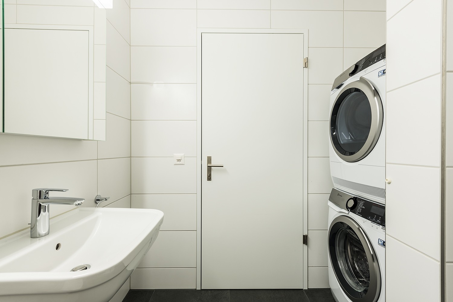 *Stilvolles Badezimmer mit Dusche und eigenem Waschturm