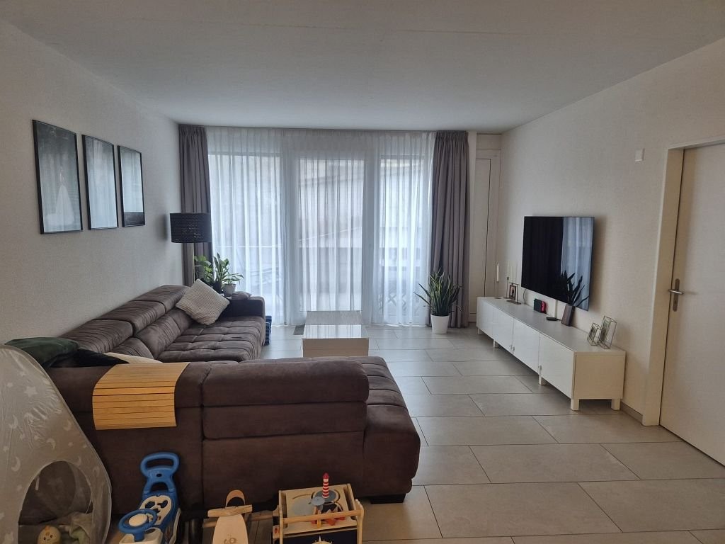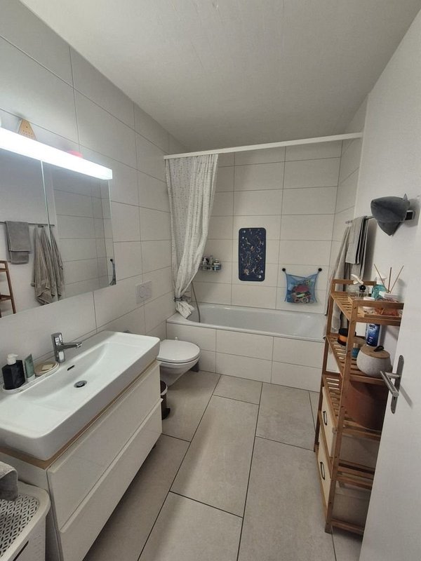 Helle und geräumige Wohnung mit offener Küche (inkl. Geschirrspüler und Granitabdeckung). Das Badezimmer ist mit einer Badewanne ausgestattet. Das zweite Badezimmer ist mit einer Dusche sowie einem eigenen Waschturm eingerichtet. In der gesamten Wohnung sind Platten verlegt. Der Sitzplatz lädt zum Verweilen ein. Ein Kellerabteil gehört zur Wohnung. Einstellhallenplätze können für mtl. CHF 130.00 / Parkplätze für mtl. CHF 60.00 dazu gemietet werden.