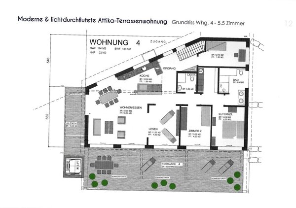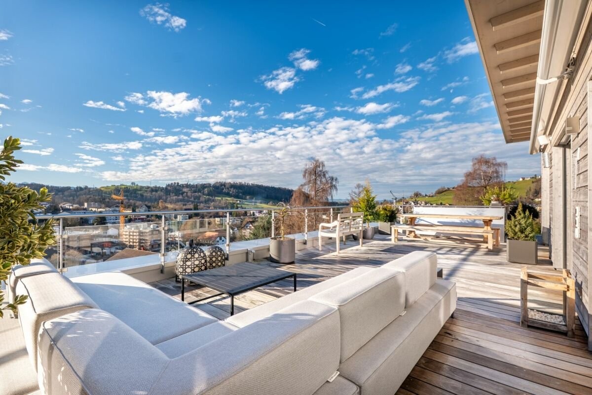 Diese moderne, lichtdurchflutete Attika-Terrassenwohnung überzeugt mit einer grosszügigen Wohnfläche und einer weitläufigen Terrasse mit herrlichem Weitblick. Der offene Wohn- und Essbereich mit Küche bietet viel Raum und Helligkeit. Neben zwei grosszügigen Schlafzimmern steht ein weiterer Raum als Büro, Gästezimmer oder Lesezimmer zur Verfügung. Ein modernes Bad, ein separates WC sowie ein praktischer Eingangsbereich mit Garderobe runden das Angebot ab.