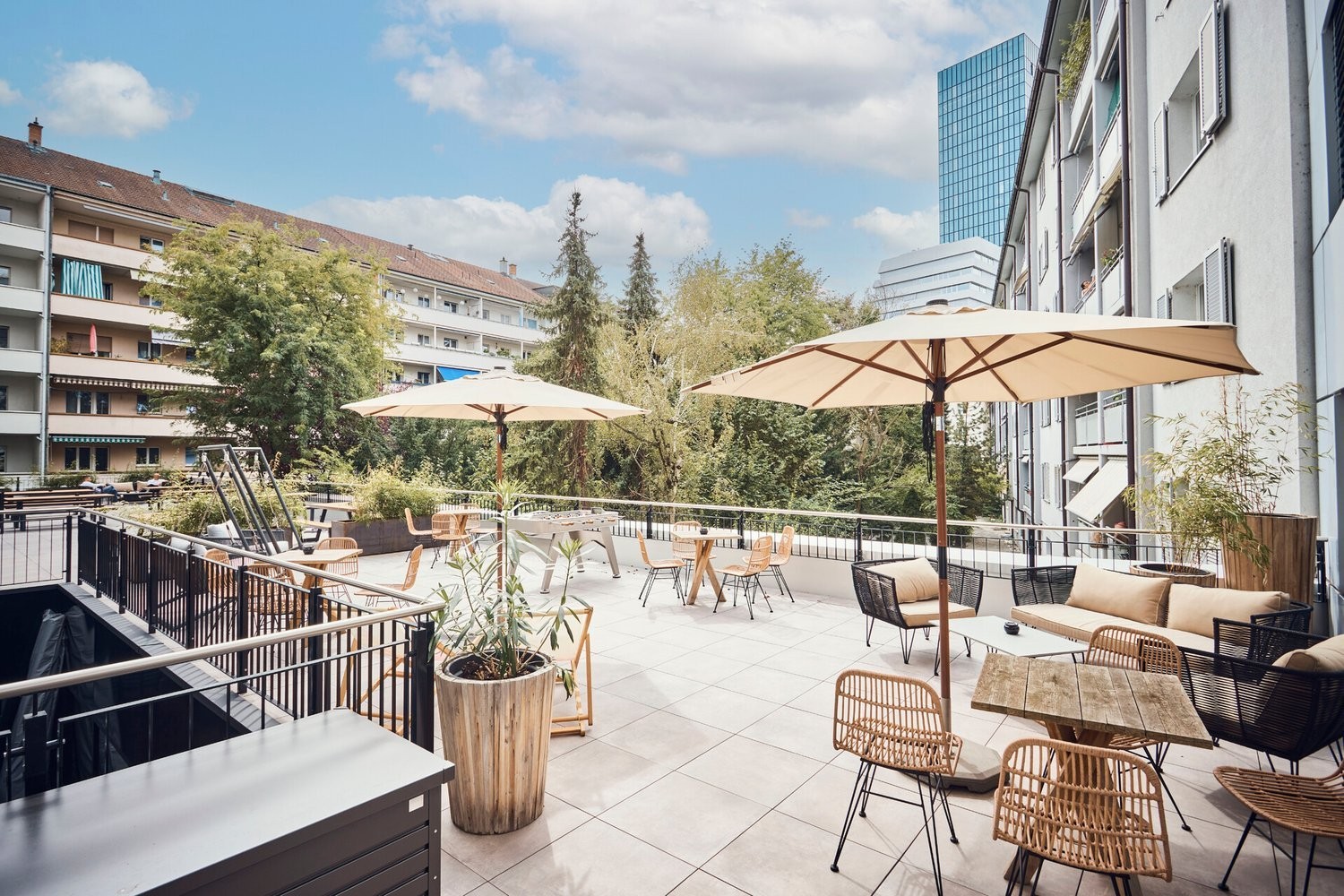 8 Meeting & Workshop-Räume ** fördern Teamarbeit und eine Eventlocation für bis zu 150 Personen schafft den perfekten Rahmen für Veranstaltungen. Zu den weiteren Highlights zählen eine riesige Terrasse sowie ein Gym mit Duschen und zahlreiche Lounges – darunter auch eine Gaming Lounge. Für kulinarische Highlights steht ein hauseigenes Restaurant** mit Member-Rabatt zur Verfügung.