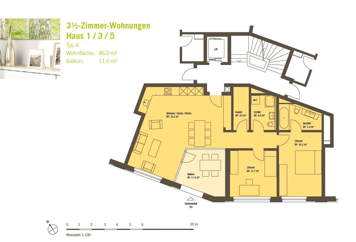 An zentraler Lage, vermieten wirg eine grosszügige 3.5 Zimmer-Wohnung in einer im 2012 überbauten Liegenschaft:
