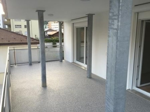 Sehr grosser Balkon (ca. 25 m2) mit Marmorkiesboden