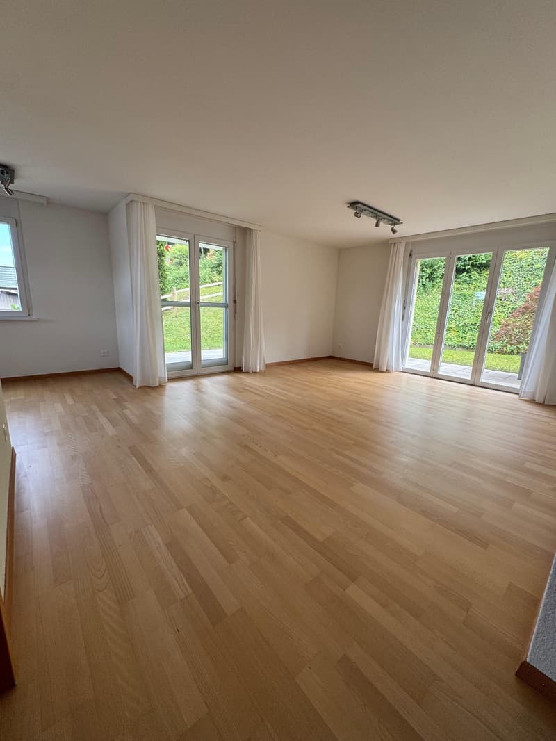 Diese charmante 3.5-Zimmer-Gartenwohnung (Parterre) in einem 5-Familienhaus besticht durch ihre Helligkeit, die lichtdurchfluteten Wohnräume und ihre gemütliche Atmosphäre. Das offene Wohnzimmer lädt zum Verweilen ein, während die moderne Küche mit hellen Schränken, Granitarbeitsplatten und integrierten Geräten, einschliesslich Geschirrspüler, perfekt ausgestattet ist. Die Wohnung verfügt über ein geräumiges Schlafzimmer sowie ein weiteres Zimmer, das sich ideal als Büro, Kinder- oder Gästezimmer eignet. Das Tageslichtbad ist mit Dusche, Badewanne, Toilette und Doppelwaschbecken ausgestattet. Ergänzt wird der Komfort durch eine separate Gästetoilette im Eingangsbereich.
