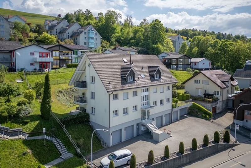 Die Wohnung wurde mit hohem Ausbaustandard errichtet und überzeugt durch ihre Wohlfühlatmosphäre. Fussbodenheizung sorgt für behagliche Wärme. Die erhöhte und idyllische Wohnlage bietet Ruhe, gleichzeitig profitieren Sie von der Nähe zur Bushaltestelle ?Saum? (nur 1 Gehminute entfernt). Von dort erreichen Sie mit der Buslinie 172 in ca. 9 Minuten die Shopping Arena St. Gallen. Einkaufsmöglichkeiten befinden sich in nur 300 m (Coop) bzw. 564 m Entfernung, Schulen in 584 m. Der Bahnhof Herisau sowie der Autobahnanschluss St. Gallen-Winkeln sind ebenfalls schnell erreichbar.