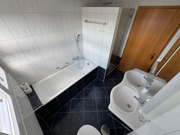 Tageslichtbad mit Dusche, Badewanne, WC und Doppelwaschbecken