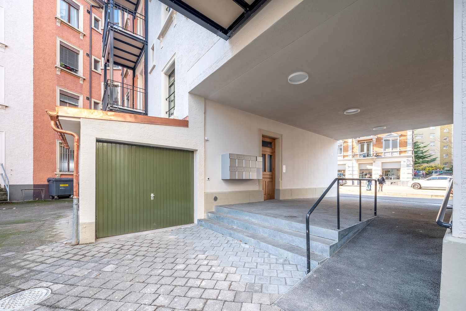Die Liegenschaft befindet sich an sehr gut frequentierter Lage und ist verkehrstechnisch bestens erschlossen. Direkt vor dem Haus befindet sich die Bus- /Tramhaltestelle «Felsenrainstrasse»