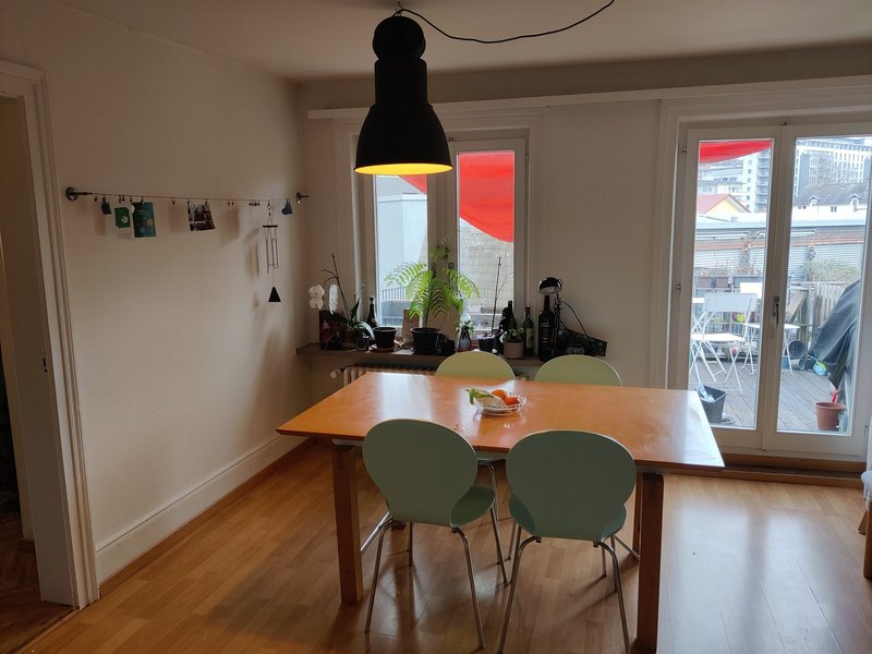 A room in our shared flat of four people will be available from April 1, 2026. The apartment is about a 10-minute walk from Winterthur train station and can be reached in under 5 minutes by bike.