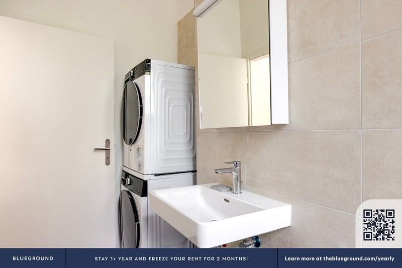 Dieses Blueground Wohnung bietet flexible Mietoptionen, sodass Sie es für einen Monat, ein Jahr oder länger buchen können.Haustiere sind willkommen, allerdings gelten Gewichts- und Rassenbeschränkungen, für die Gebühren anfallen können.Bitte beachten Sie, dass es sich um ein Gebäude ohne Aufzug handelt.