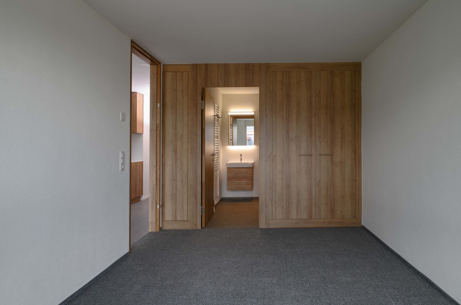 Besucherparkplätze befinden sich hinter dem Gebäude.