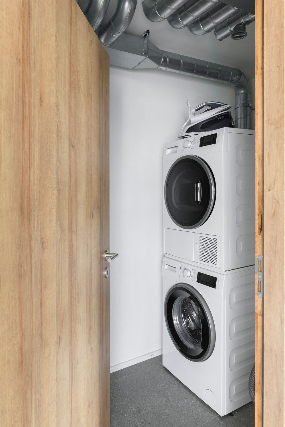 Sanitär: Bad mit Dusche, Waschmaschine, Wäschetrockner