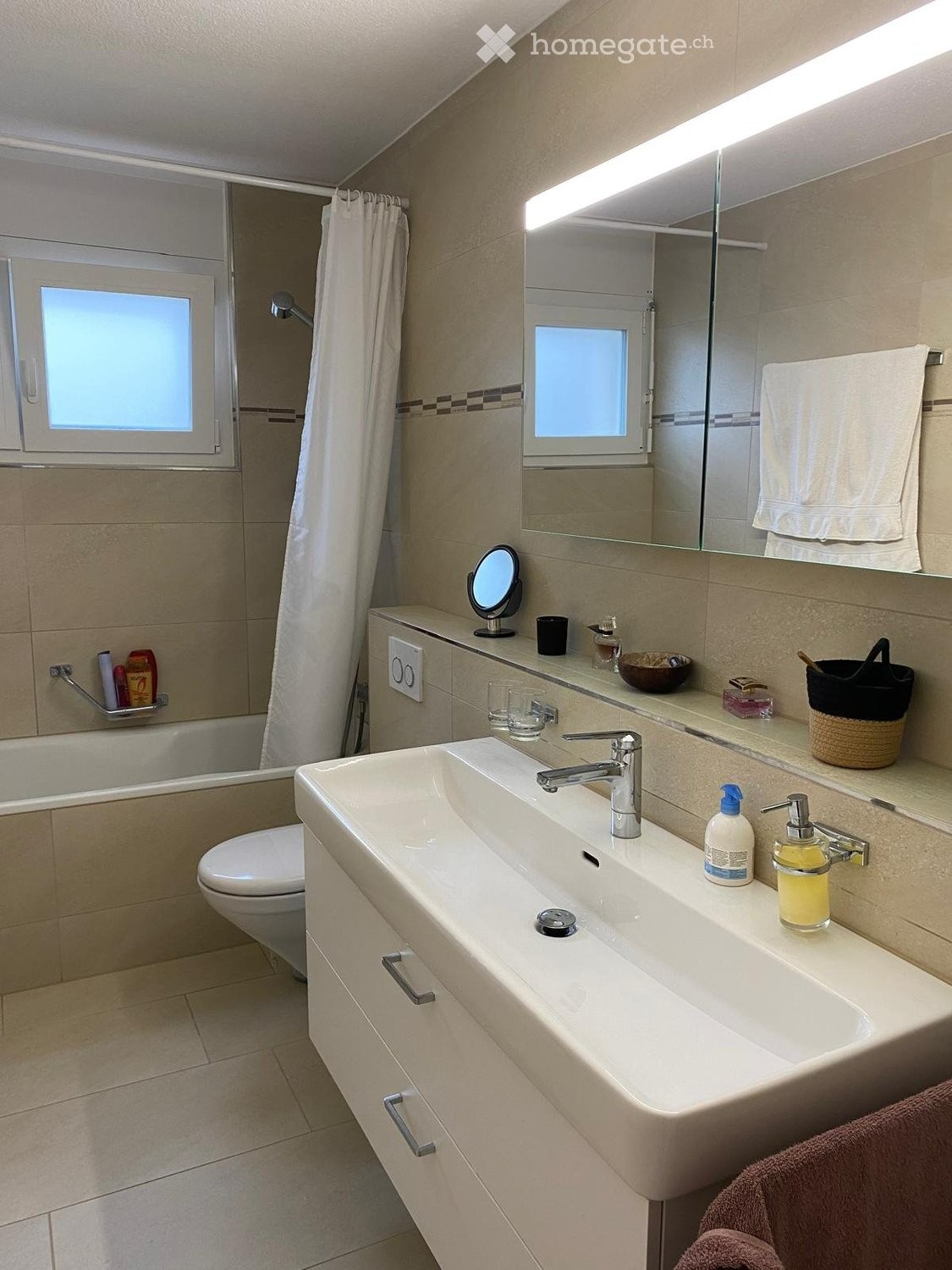 Beide Badezimmer wurden renoviert und modern ausgestaltet. In einem der beiden Badezimmer sind Waschmaschine und Tumbler integriert und sorgen für zusätzlichen Komfort im Alltag.