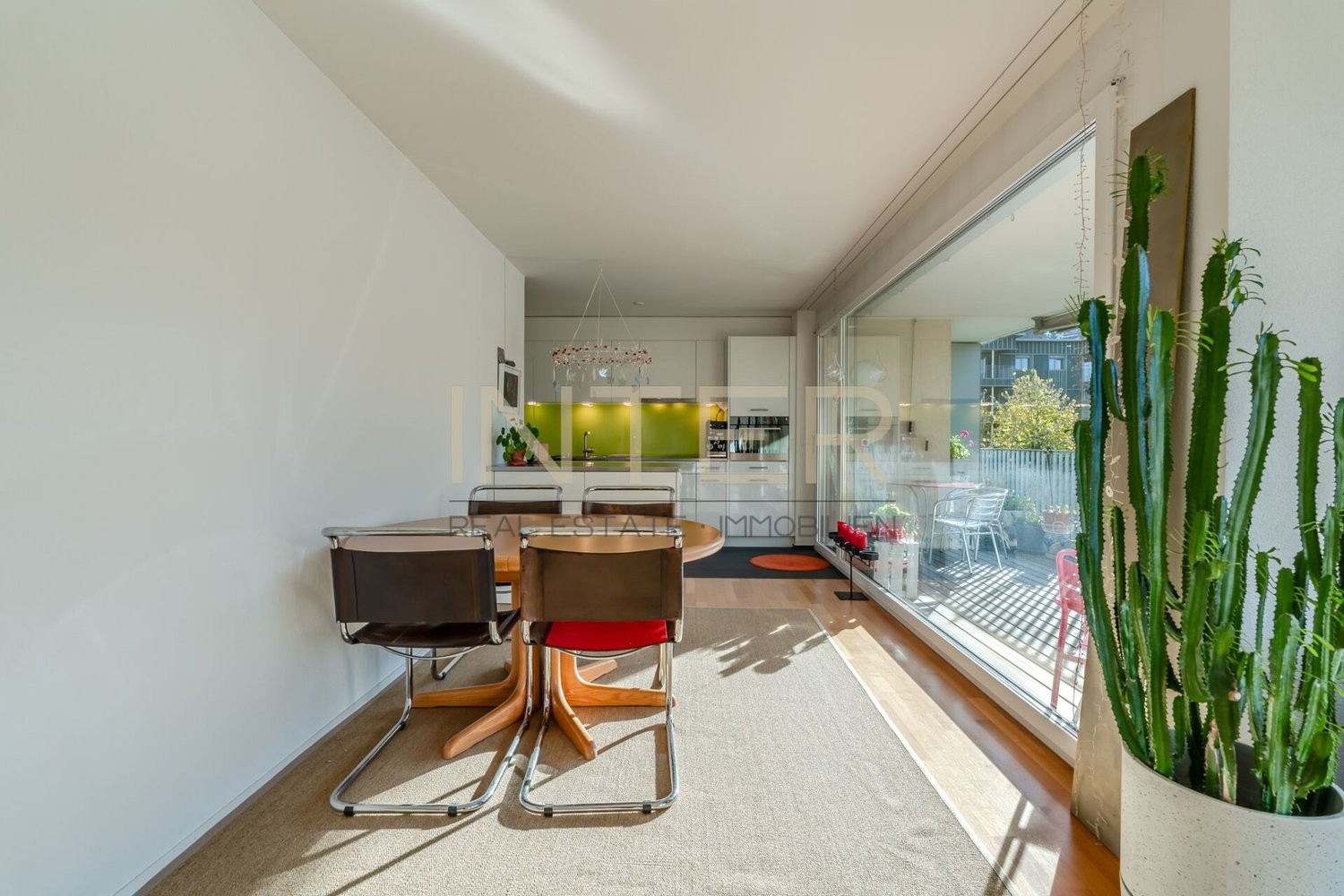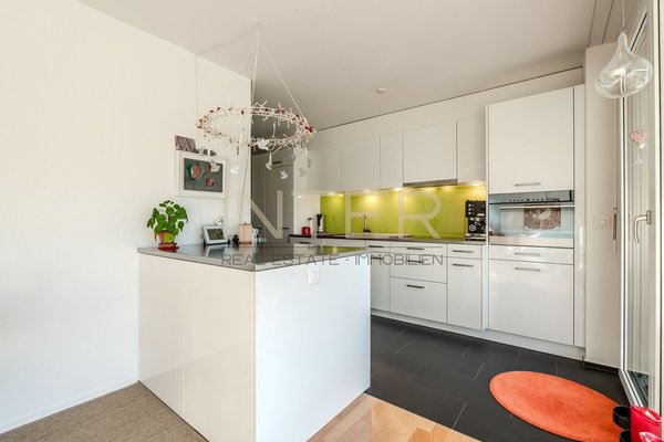 Der helle Wohn- und Essbereich öffnet sich zur hochwertigen V-Zug-Küche mit Kochinsel , die sowohl für Alltag als auch für Gäste perfekt geeignet ist. Drei gut proportionierte Schlafzimmer, zwei moderne Nasszellen, Eichenparkett, Fussbodenheizung und dreifach verglaste Fenster schaffen ein Wohnambiente, das Ruhe, Komfort und Qualität vereint. Zur Wohnung gehören zudem ein grosszügiger Kellerraum , eine eigene Waschküche sowie ein Tiefgaragenplatz (CHF 40'000.-) mit Vorbereitung für eine E-Ladestation - ein wichtiger Vorteil für die Zukunft.