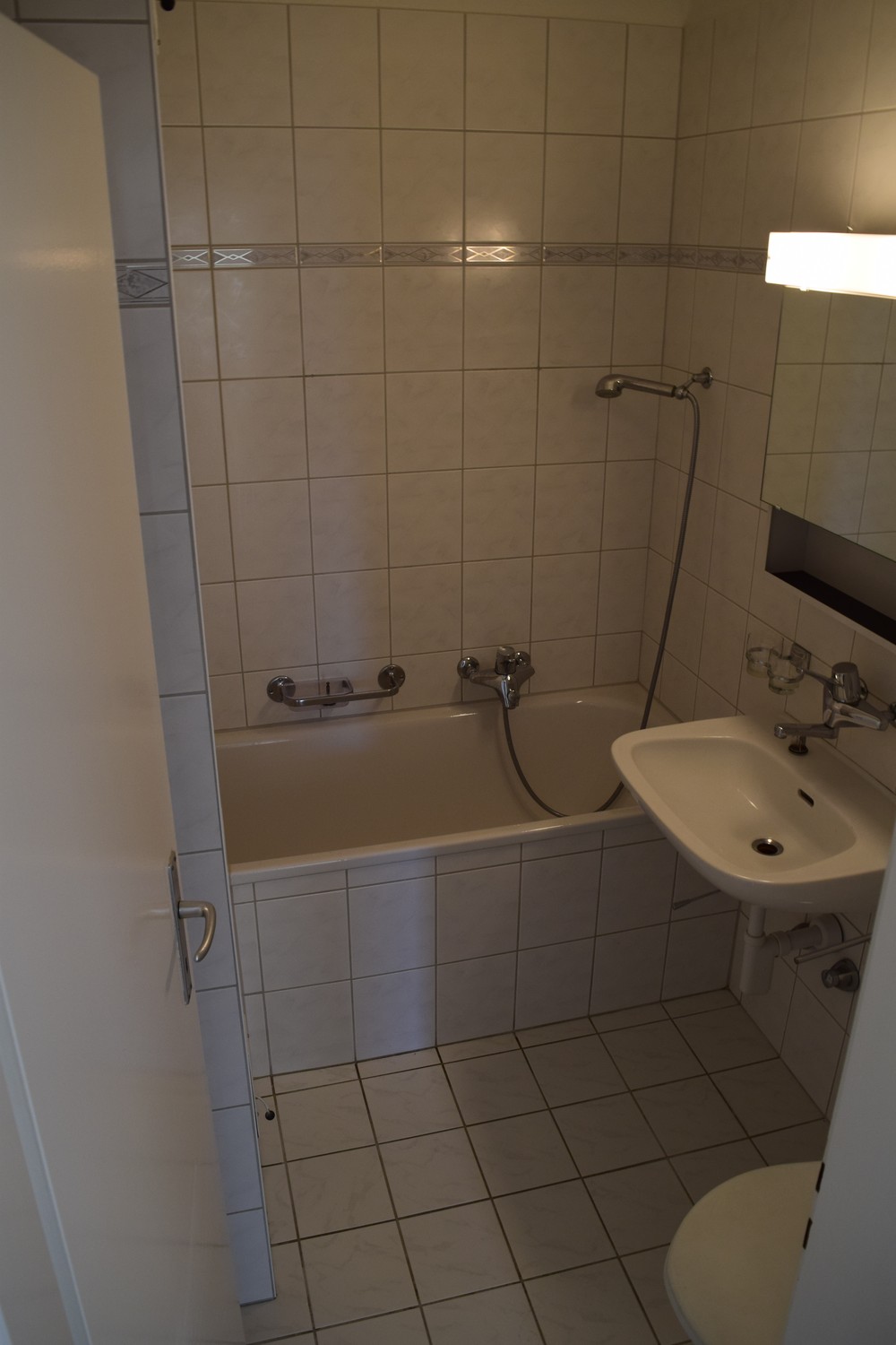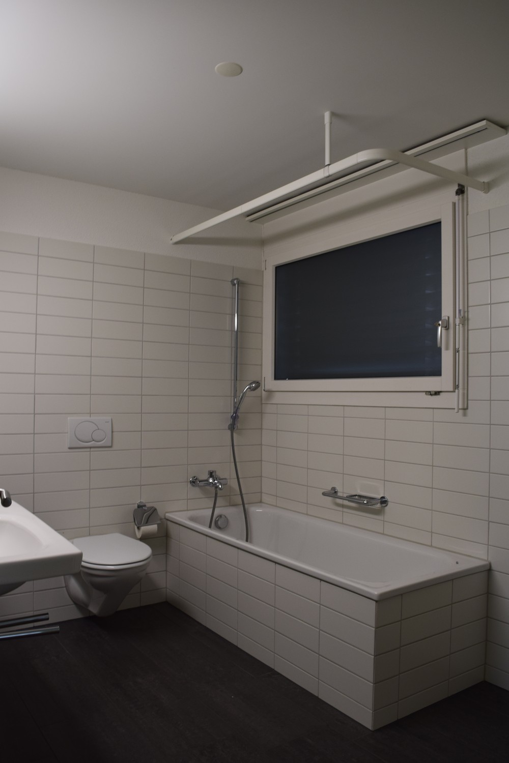 - WC-Anlage mit Fenster, Lavabo und Keramikplatten
