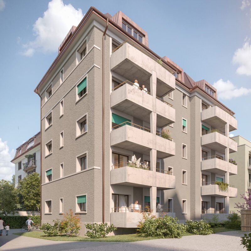 Das Mehrfamilienhaus an der Schibistrasse wurde nachhaltig energetisch vollsaniert. Die grosszügigen Wohnungen überzeugen mit hochwertigem