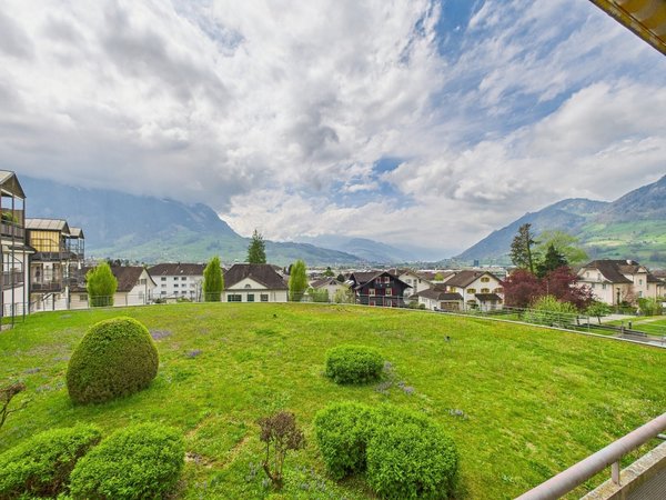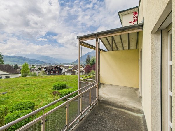 Praktischer Balkon: Mit herrlichem Blick auf die Berglandschaft und umliegenden Häuser