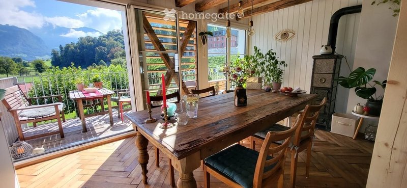 Zu vermieten auf Juni 26, schöne doppelstöckige Wohnung mit Balkon und traumhafter Aussicht für 2 Personen. Alle Zimmer mit altem Parket, 4 jährige Küche, kleines Bad plus antiker Zimmerofen, Bodenheizung. Dachstock mit 2 zusätzlichen Flächen & Kellerabteil. Preis 1800Fr. Nebenkosten inkl. Strom 250Fr. & Parkplatz und Garage 150 Fr.