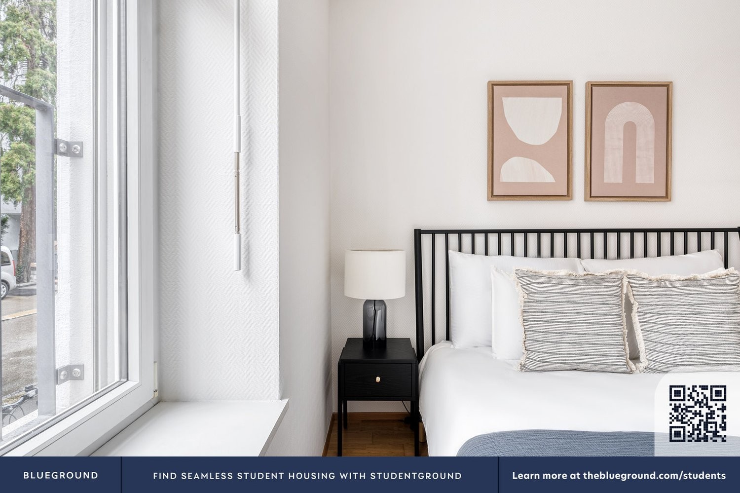 Durchdachtes Design mit maßgeschneiderten Oberflächen und moderner Einrichtung, und eine voll ausgestattete Küche, Sie werden das „Ich bin zu Hause“-Gefühl mit diesem Blueground Wohnung genießen. Egal, ob Sie in Ihrem stilvoll Wohnzimmer die neuesten und besten Unterhaltungssendungen über den Smart-TV oder den kabellosen Premium-Lautsprecher streamen oder sich auf der hochwertigen Matratze ausruhen – Sie werden sich in alles verlieben, was dieses Sihlfeld Wohnung zu bieten hat.