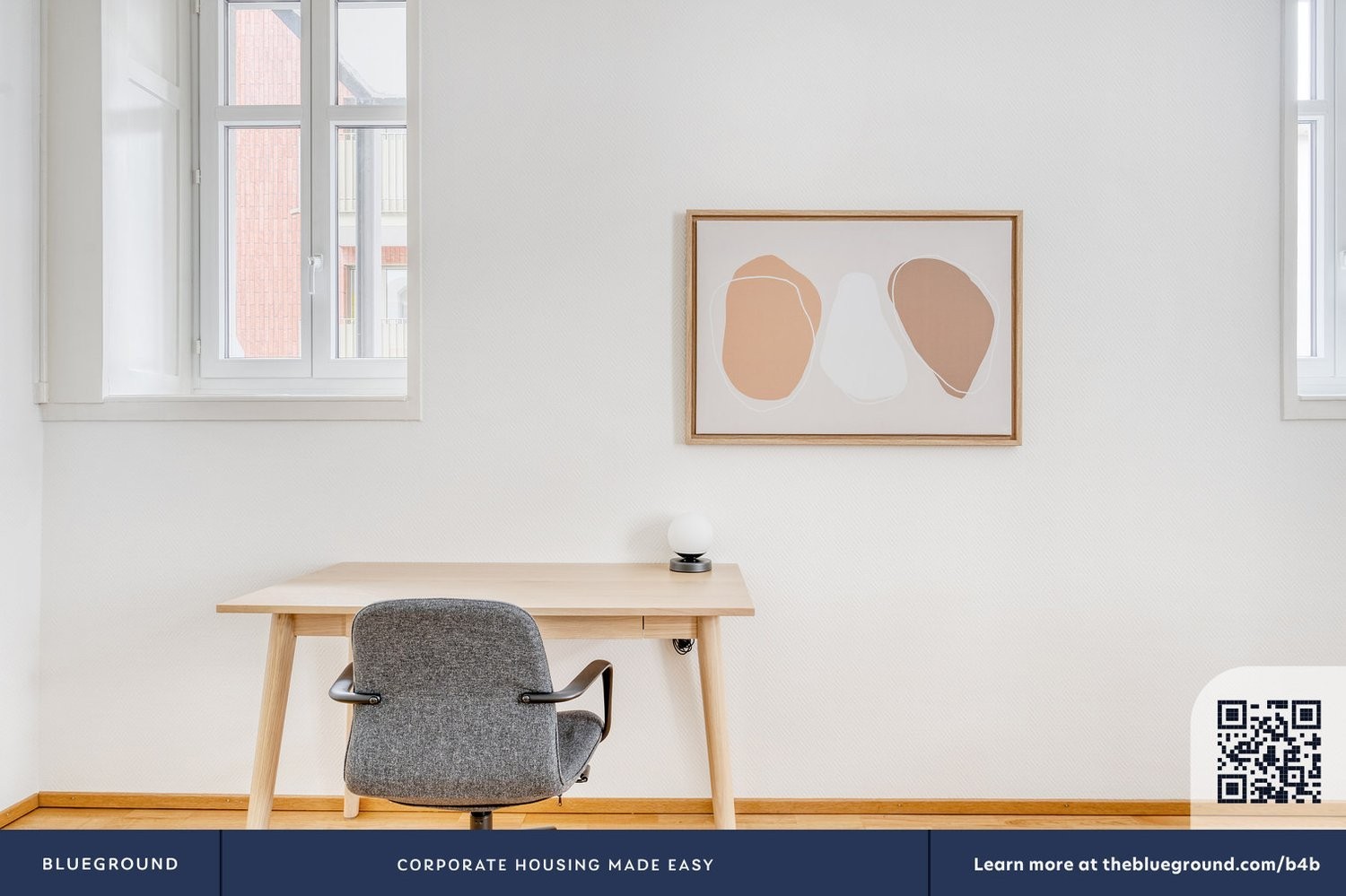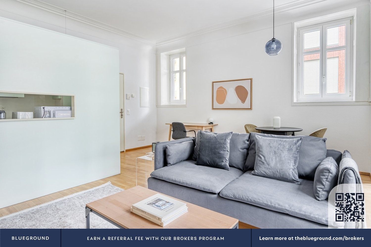 Kommen Sie an und beginnen Sie ab dem ersten Tag zu leben in Zurich mit diesem schön Ein-Schlafzimmer Blueground-Wohnung . Sie werden es lieben, nach Hause zu kommen in dieses liebevoll eingerichtete, schön gestaltete und voll ausgestattete Haus Sihlfeld mit atemberaubendem Blick auf die Stadt. (ID #ZRH16)