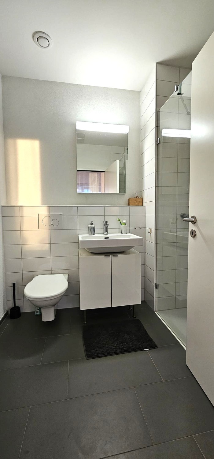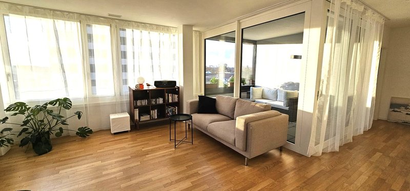 This modern bright and fully furnished apartment is located in a quiet and well-connected area close to the Bad Bhf and Lange Erlen park. It features a sunny living space with fully equipped kitchen, nice balcony, underfloor heating and private washer-dryer combo. The building is minergie certified and has a large lift.