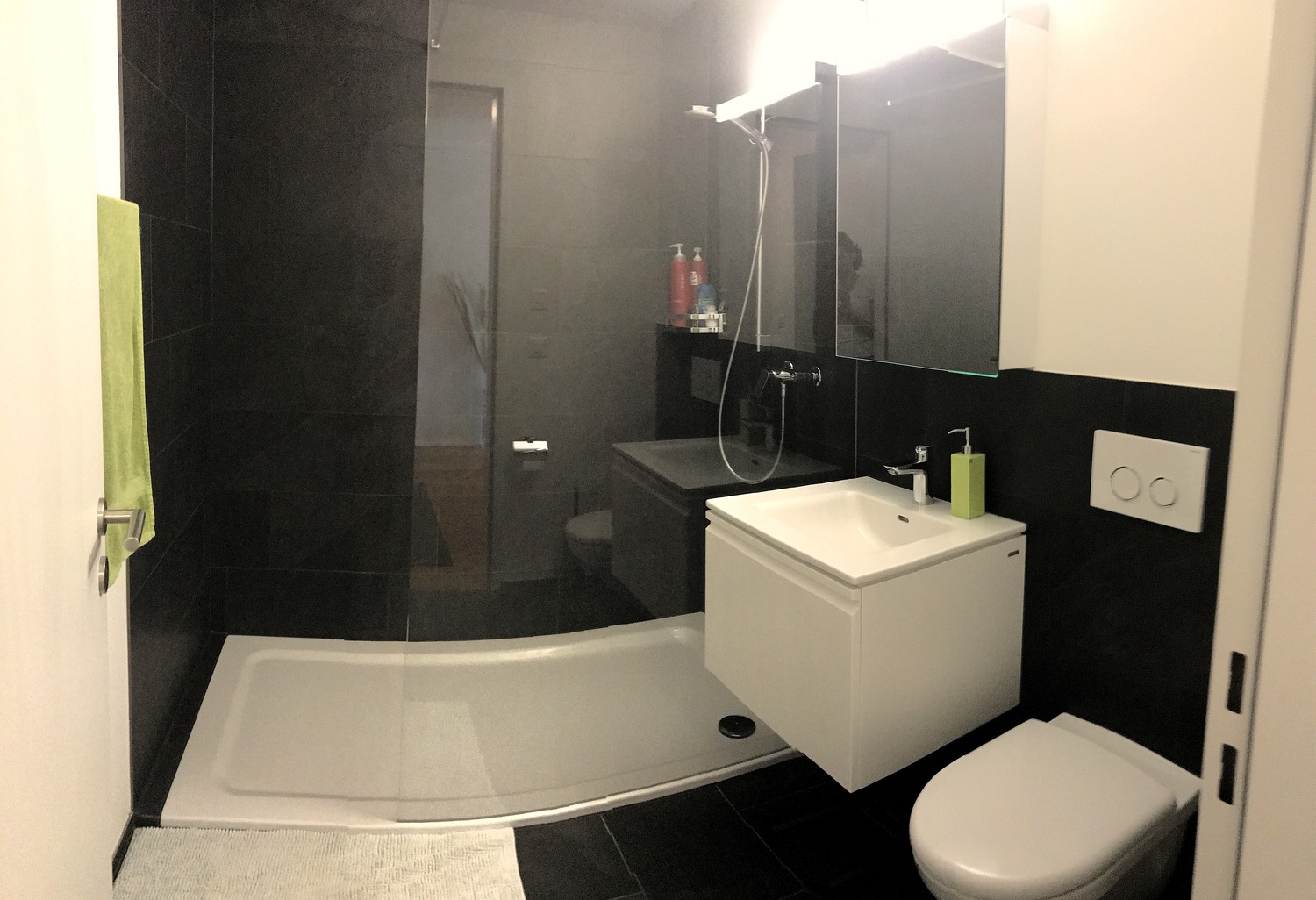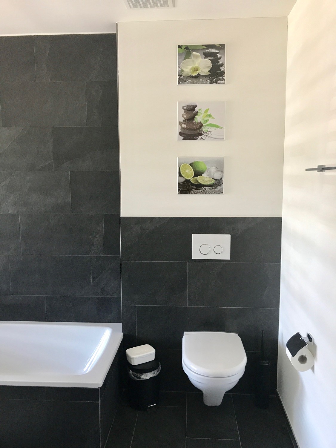 Zwei stilvolle Nasszellen mit Plattenbelägen