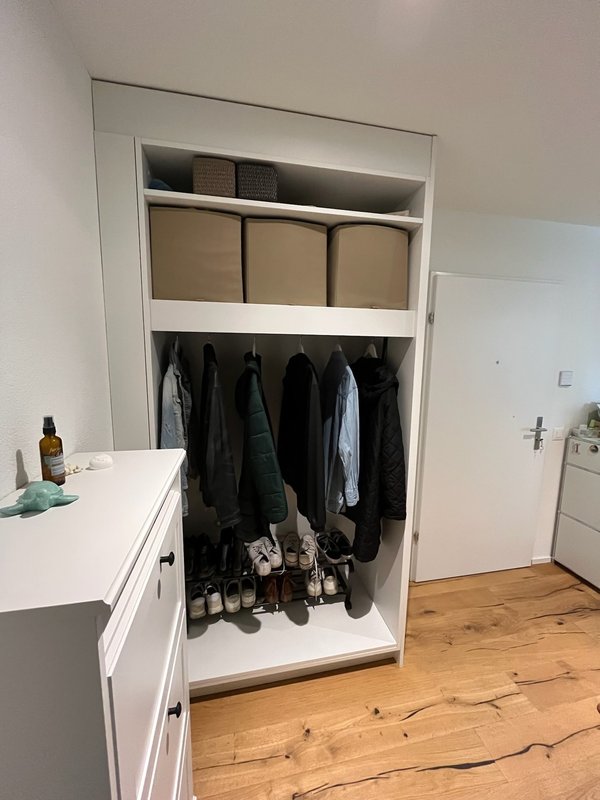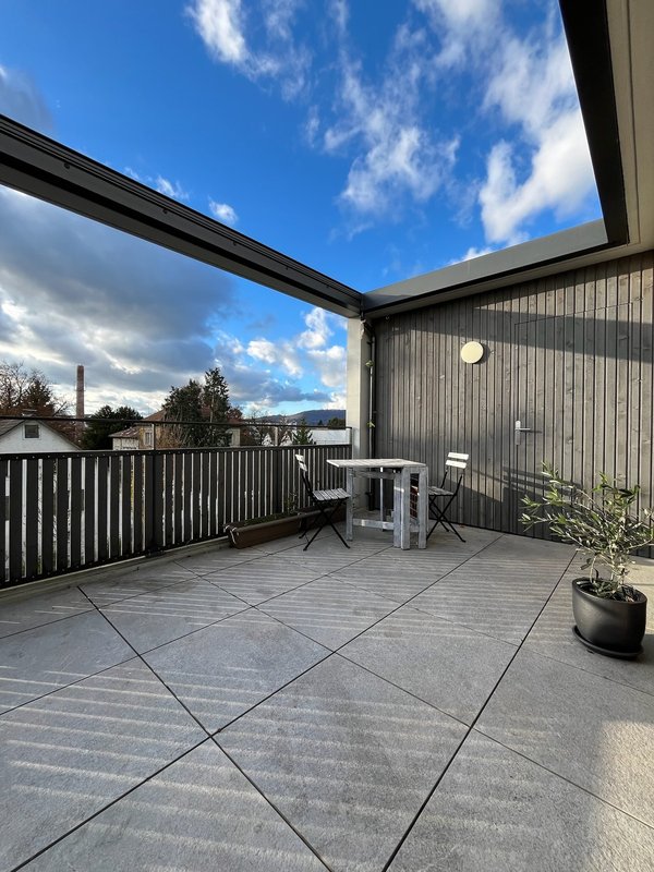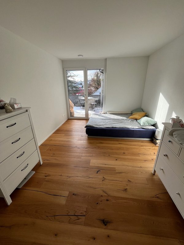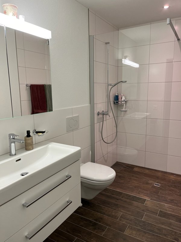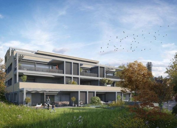 Ausstattung - Wohnfläche 76m2 - massiver Eichenparkettboden in Garderobe, Küche, Wohnzimmer und Schlafzimmer - Garderobe mit Einbauschrank - Badezimmer mit begehbarer Dusche - geräumiges Schlafzimmer - grosser, heller Wohnbereich mit offener Küche - Küche verfügt über einen Combi Steamer, Geschirrspüler und Kühlschrank - Minergie Standart - Reduit mit eigenem Waschturm und Waschbecken - Terrasse mit elektrisch betriebener Markise, Reduit und Wasseranschluss - Kellerabteil - Einstellplatz in der Tiefgarage für CHF 130 verfügbar