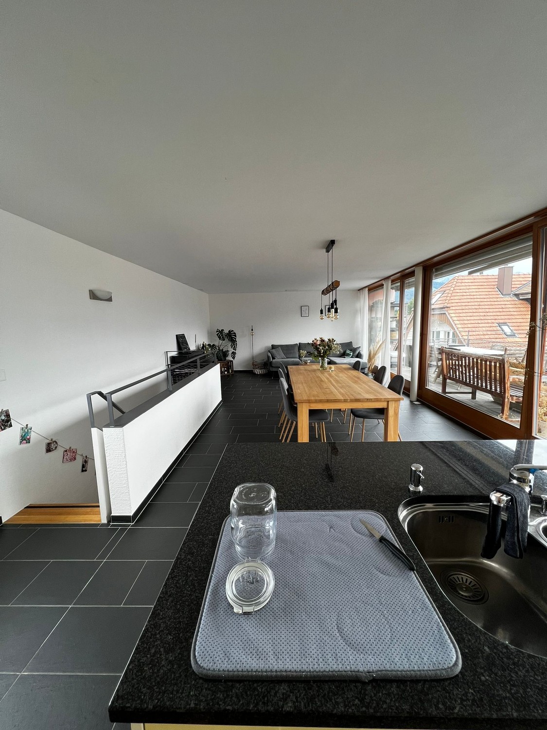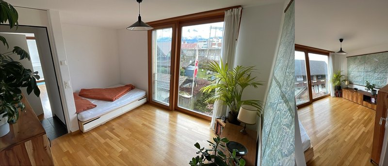 Das Zimmer ist etwas mehr als 11m2 gross und unmöbliert. Dank der grossen Fensterfront ist das Zimmer sehr hell. Alle Schlafzimmer befinden sich im unteren Stock. Der obere Stock besteht aus einem grosszügigen Wohnzimmer/offener Küche und einer grossen, SE-exponierten Terrasse mit super Aussicht auf die Berge. Bezugstermin ist flexibel zwischen 1. April und 1. Juni 2026 - je früher desto besser.
