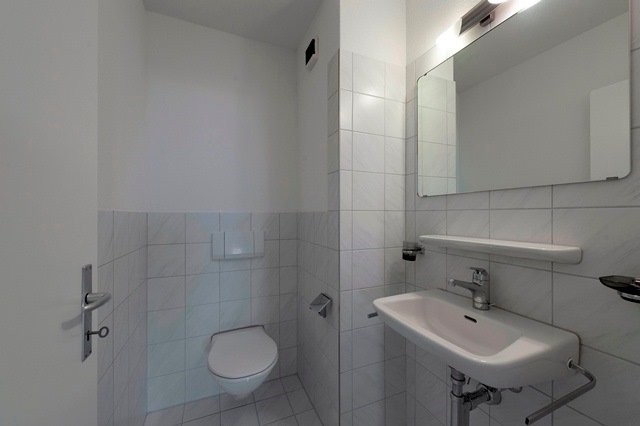 - Separates Bad mit WC, Lavabo und Spiegelschrank