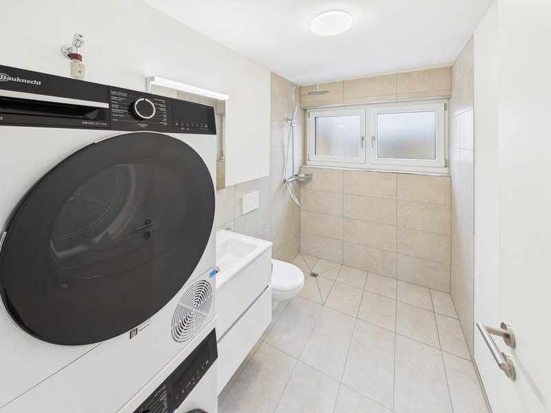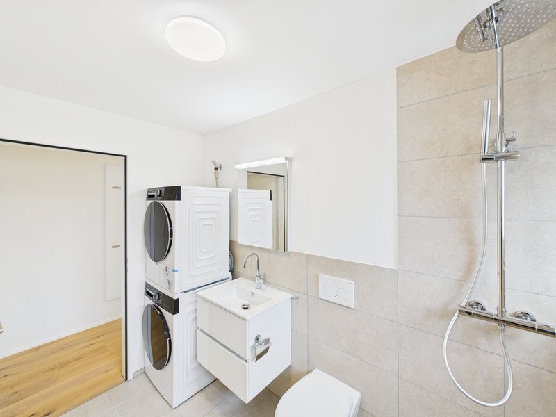 Moderne Ausstattung: Geschirrspüler, eigene Waschmaschine und Tumbler sind bereits vorhanden. (Duschtrennwand in Glas ist auf den Fotos noch nicht ersichtlich)