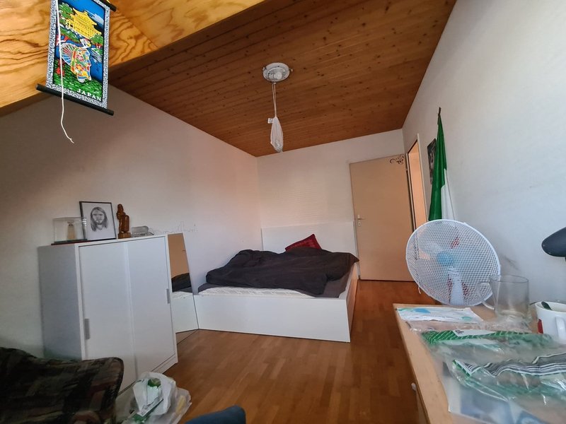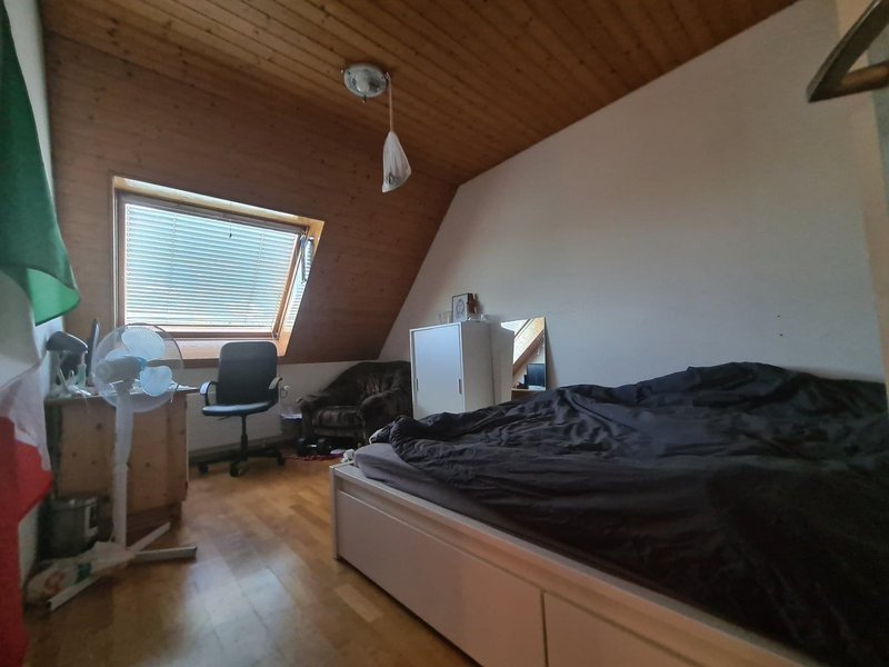 Spacious and bright independent 4.5 rooms studio located in the 4th floor (attic) in Zurich. Ideal for one person that commutes during the week and does not want to travel every day. As you can see in the pictures you can fit a queen bed easily and set a small living room and kitchen table. . It has a couple of wall wardrobes and a bathroom with bathtub. The kitchen is basic but good enough for warming and preparing small dishes since kitchen . There is a big keller available and community washing machine and dryer free of schedules. The flat is very quiet.