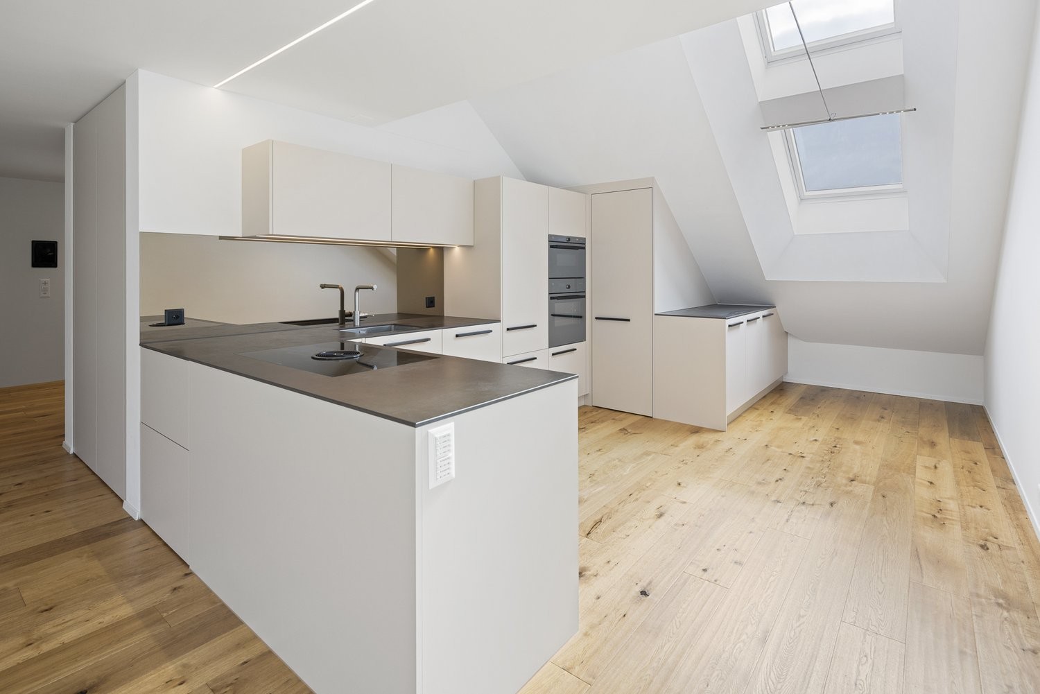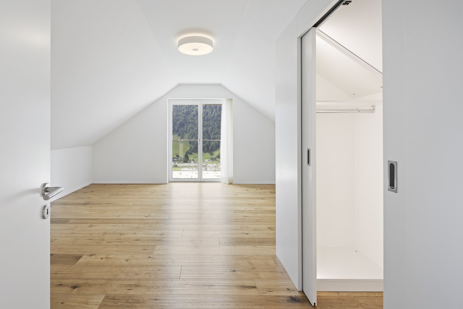 Im Dachgeschoss setzt sich das hochwertige Wohngefühl fort. Der grosszügige Masterbedroom mit Ankleide und eigenem Balkon vermittelt ein Gefühl von Weite und Geborgenheit. Zwei weitere Zimmer, ein Bad mit Dusche und WC sowie ein zusätzliches Reduit schaffen Raum für Individualität und Komfort.