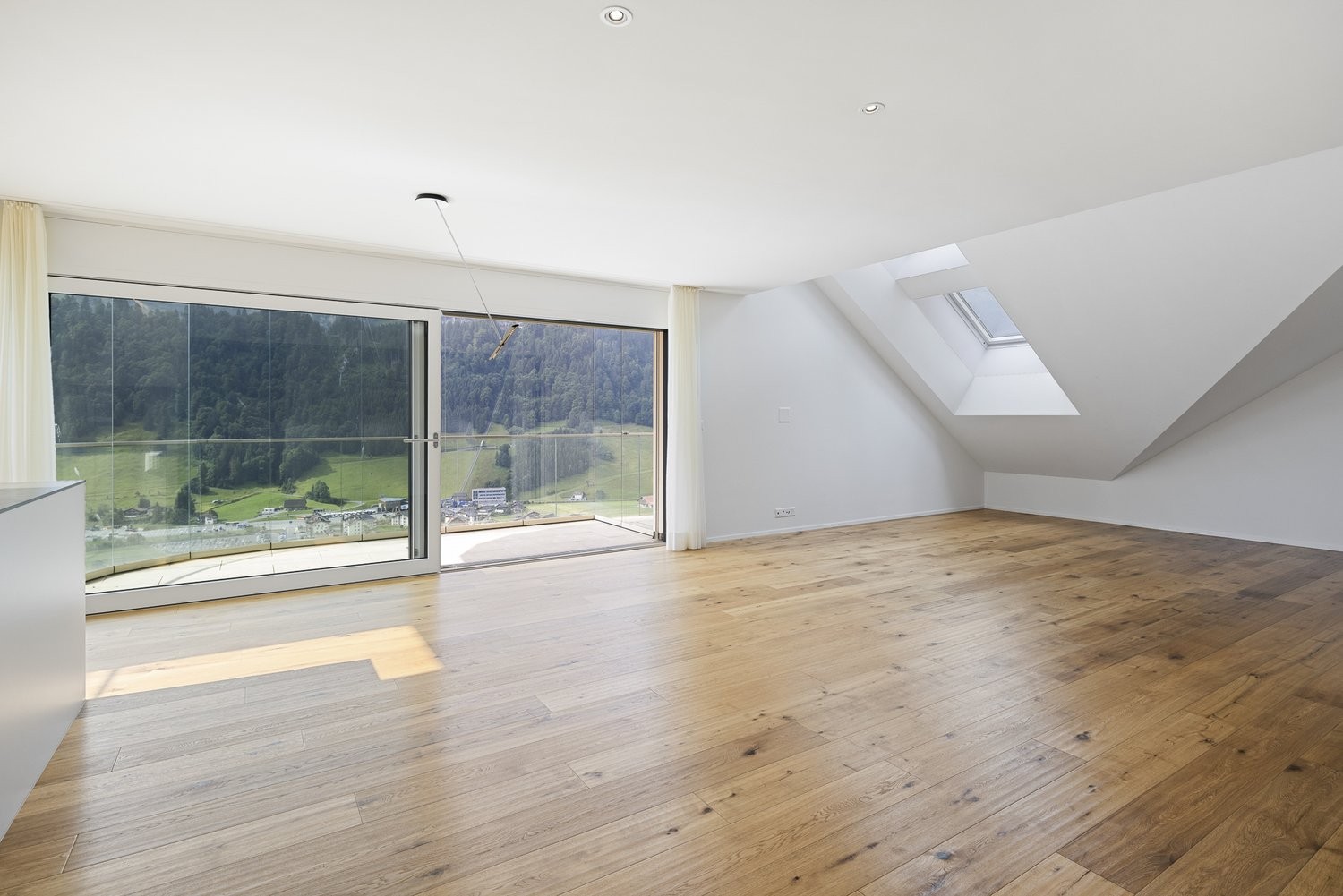 Die sonnenverwöhnte Lage eröffnet Ihnen eine spektakuläre Panorama-Aussicht auf das Dorf und die umliegende Bergwelt, und zwar bis zum majestätischen Titlis. Grosszügige Fensterfronten, durchdachte Grundrisse und fein abgestimmte Materialien schaffen eine Atmosphäre voller Licht, Weite und Wärme.