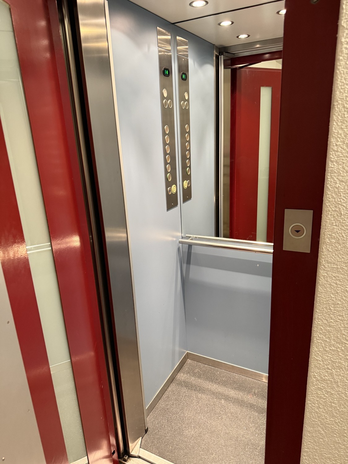 – Im 5. Stock, erreichbar über das Treppenhaus oder mit einem kleinen Personenlift (ca. 1 m² Grundfläche)