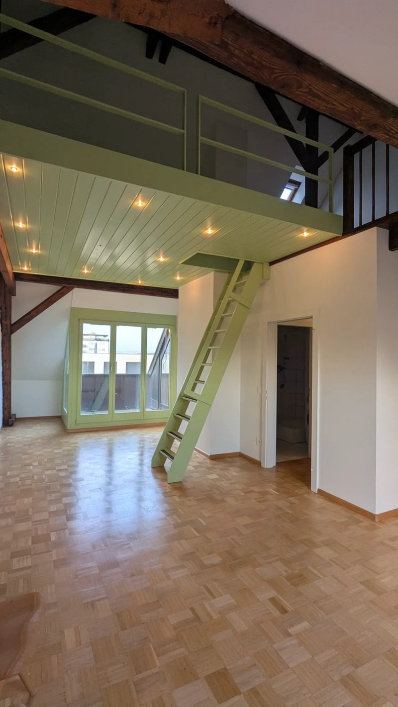 Diese sanft renovierte zweistöckige Loftwohnung im Dachgeschoss eines historischen Gebäudes aus dem Jahr 1920 wurde vom renommierten Baubüro insitu Basel mit viel Feingefühl und Respekt gegenüber der bestehenden Substanz modernisiert. Entstanden ist ein einzigartiger Wohnraum, der moderne Klarheit mit rustikalem Charme auf elegante Weise vereint.