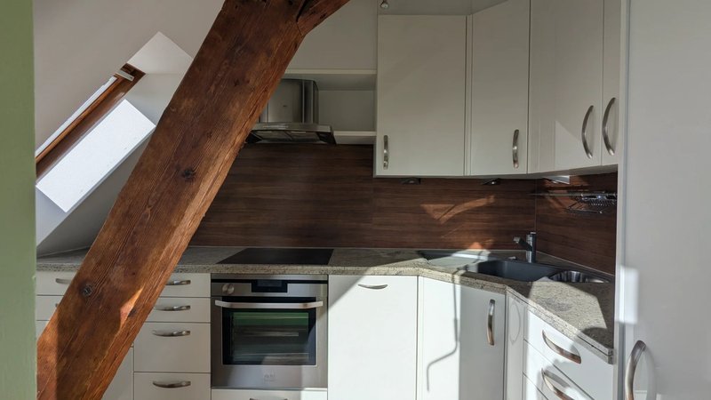This gently renovated loft apartment, located in the attic of a historic building dating back to 1920, was modernized by the renowned architectural firm insitu Basel with great sensitivity and respect for the existing structure. The result is a unique living space that elegantly combines modern clarity with rustic charm.