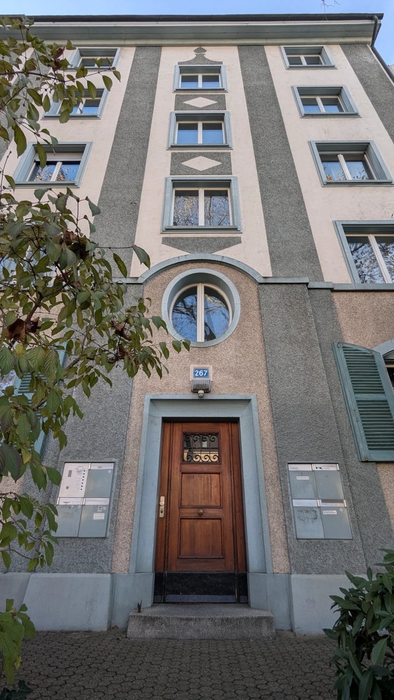 Situated in close proximity to the Badischer Bahnhof, the apartment features a balcony facing the quiet inner courtyard and offers an urban view of the city skyline. Well connected yet peaceful - a place to fall in love with.