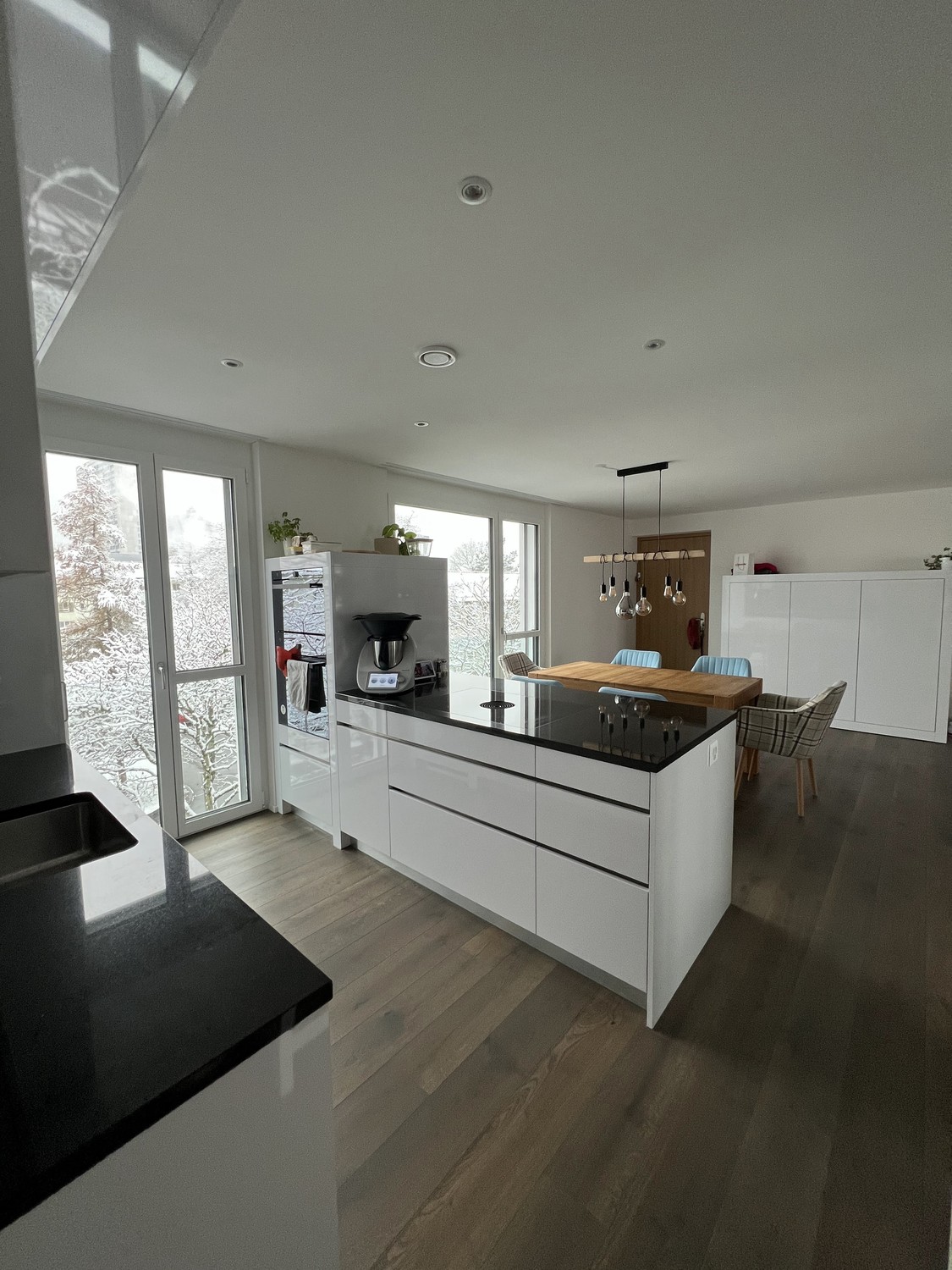The apartment is located at Schweighofstrasse, next to Schweighof train station. New build, with parking space included in price, and elevator.
